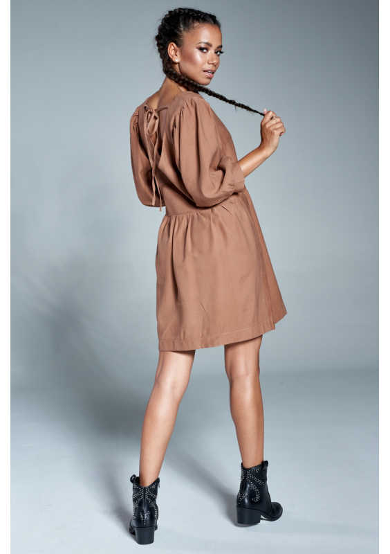 Maud - Boho brown muslin mini dress