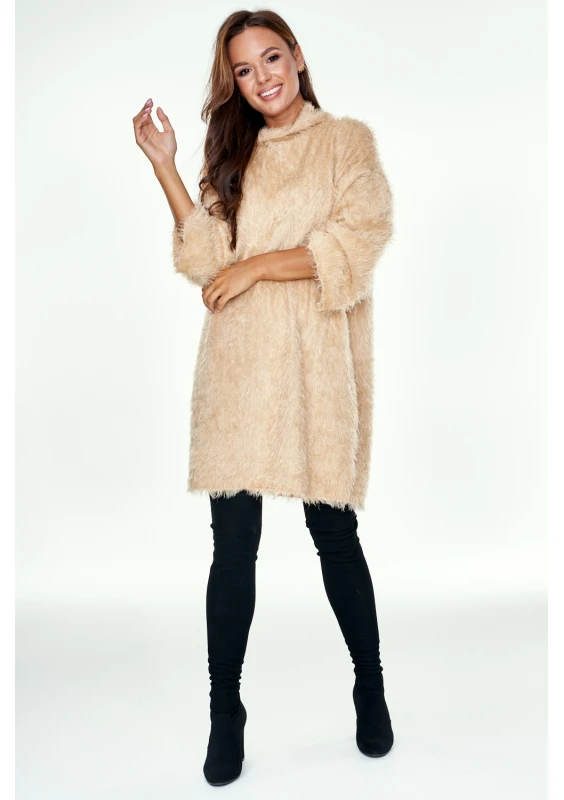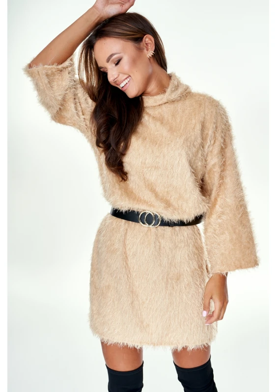 BEIGE FLUFFY TUNIC WITH TURTLENECK