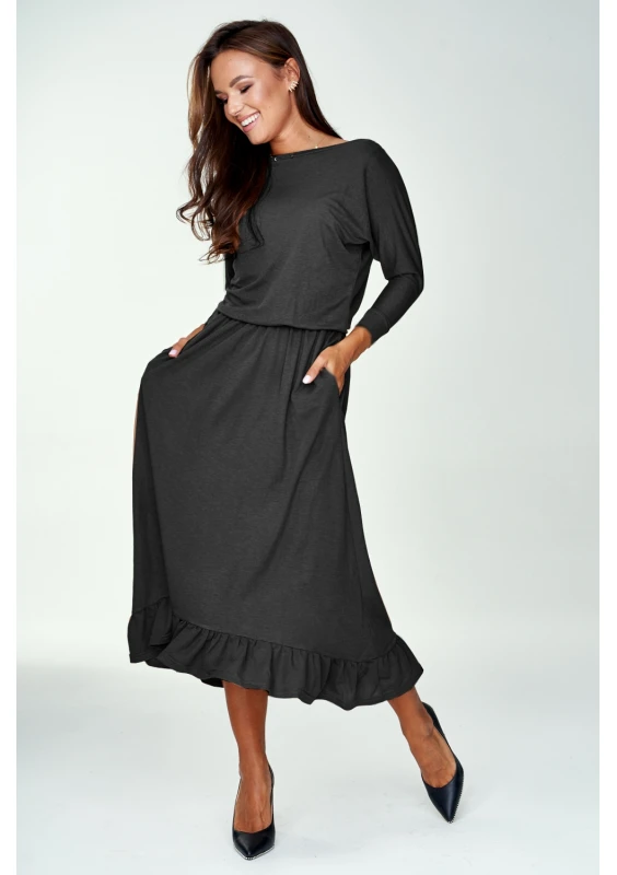 BLACK MIDI DRESS WITH FRILL