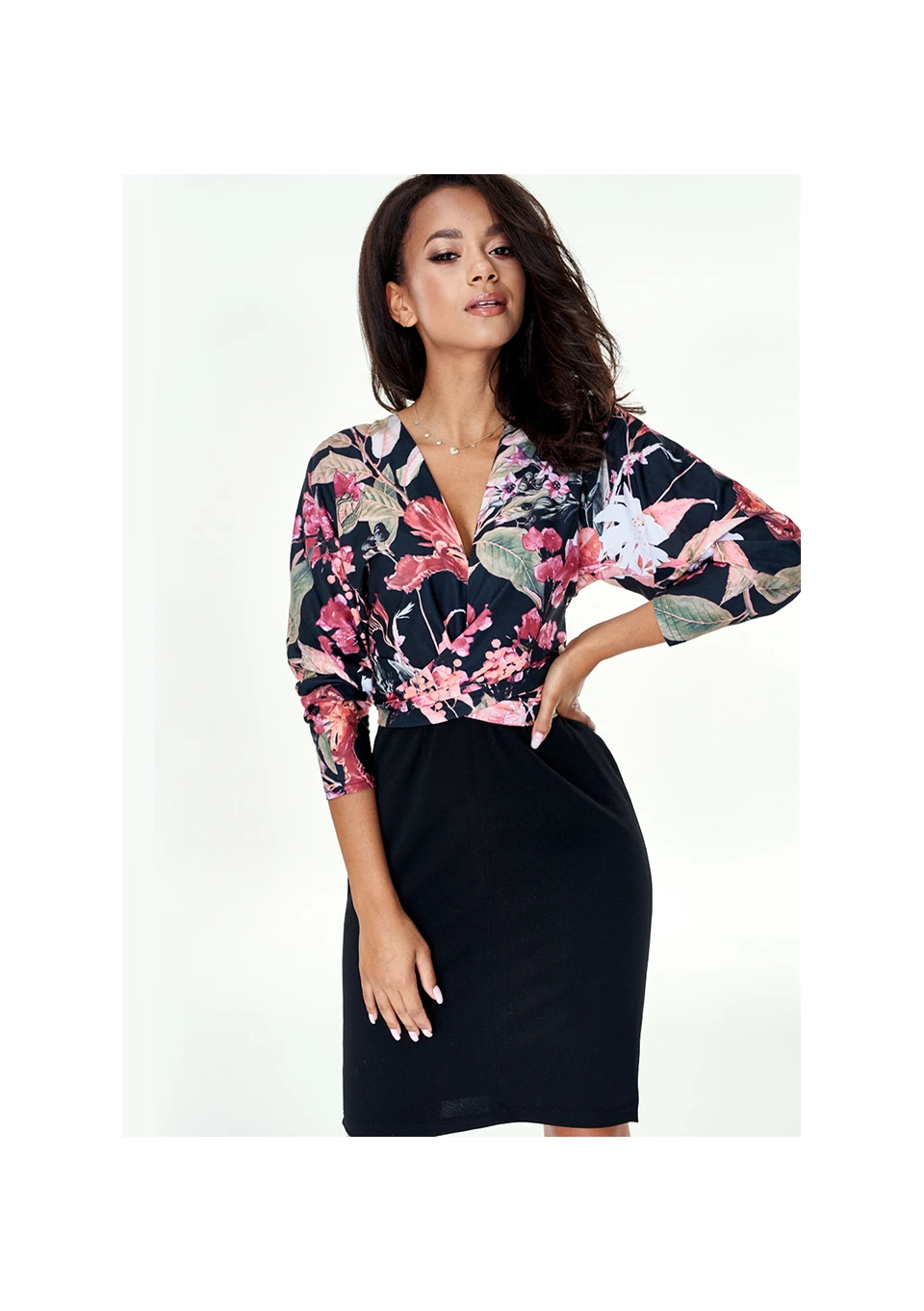 BODYCON DRESS WITH FLOWERS PRINT TOP
