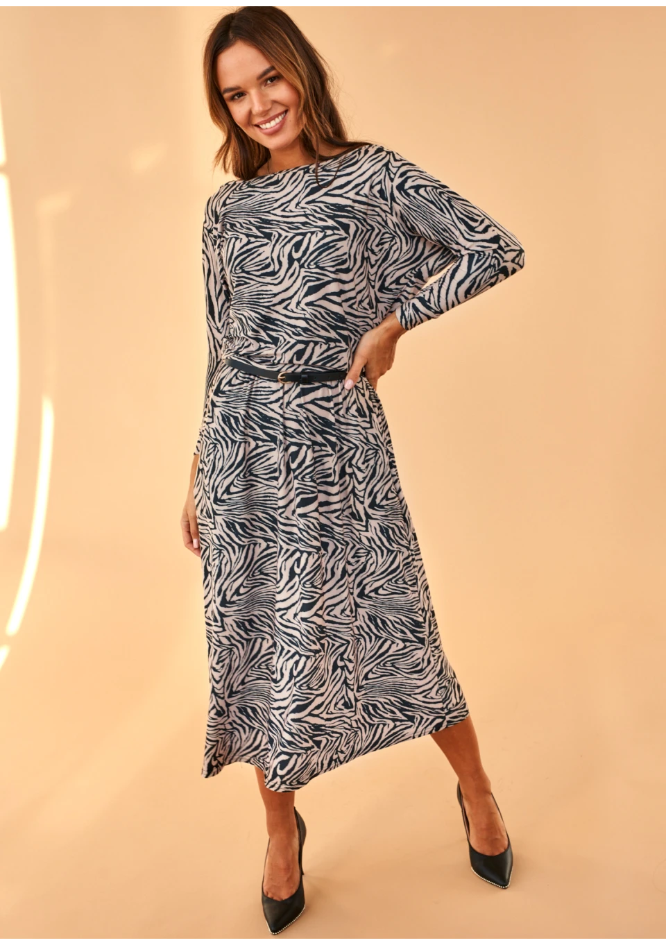 VISCOSE MIDI DRESS IN BEIGE PRINT