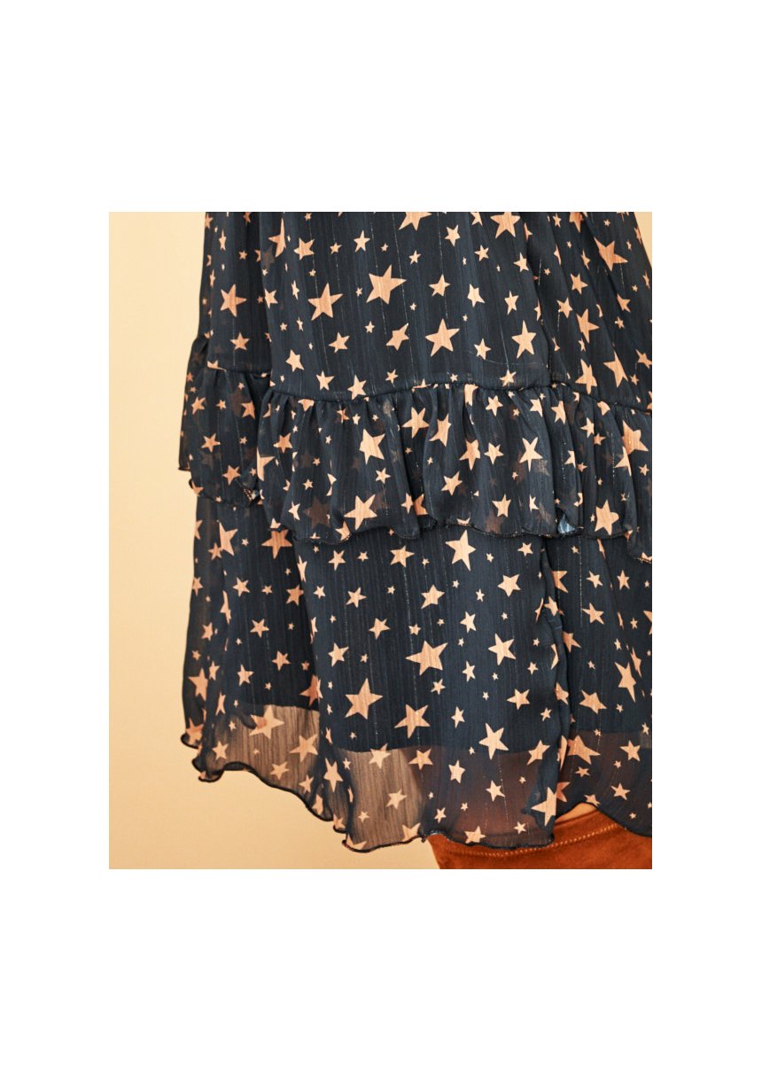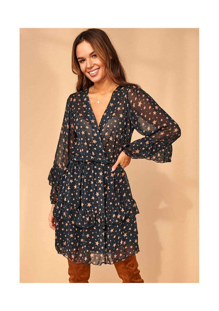 BLACK CHIFFON CROSSOVER DRESS IN STARS PRINT