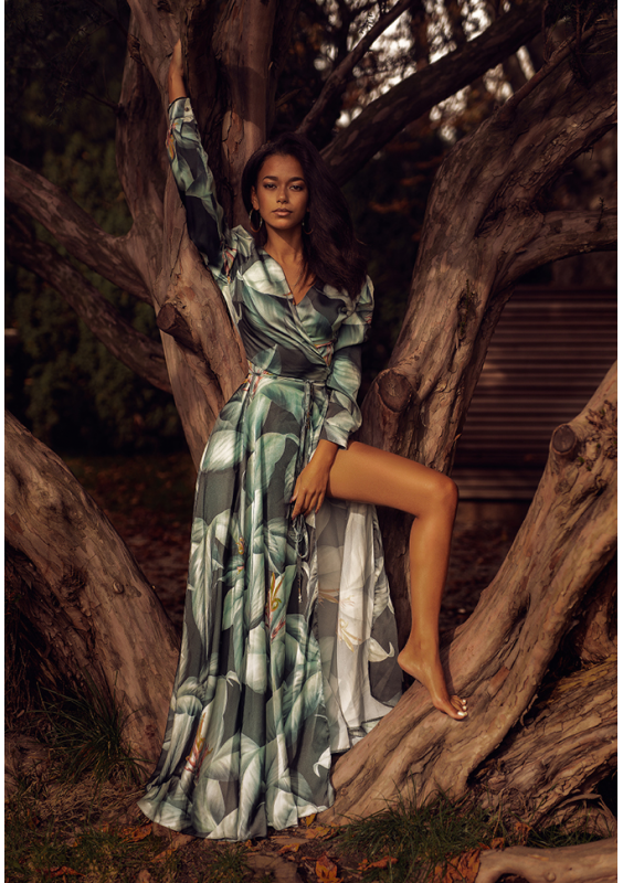 Lina - Black maxi dress in dark leaves