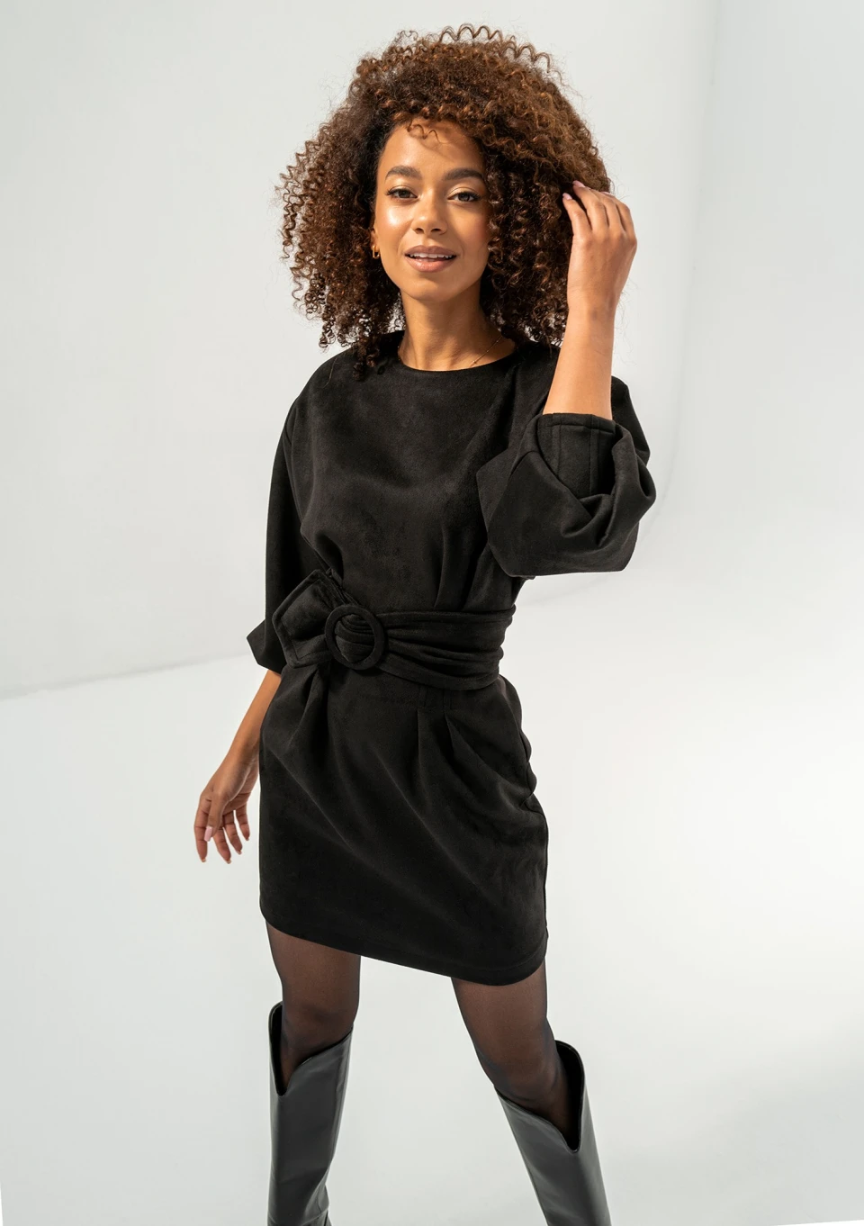 -30% Matea - Latte beige faux suede mini pencil dress zł249.99 zł174.99 Lowest price from the last 30 days zł249.99