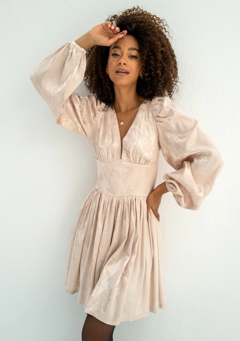 -30% Jaya - Beige shiny jacquard mini dress zł339.99 zł237.99 Lowest price from the last 30 days zł339.99