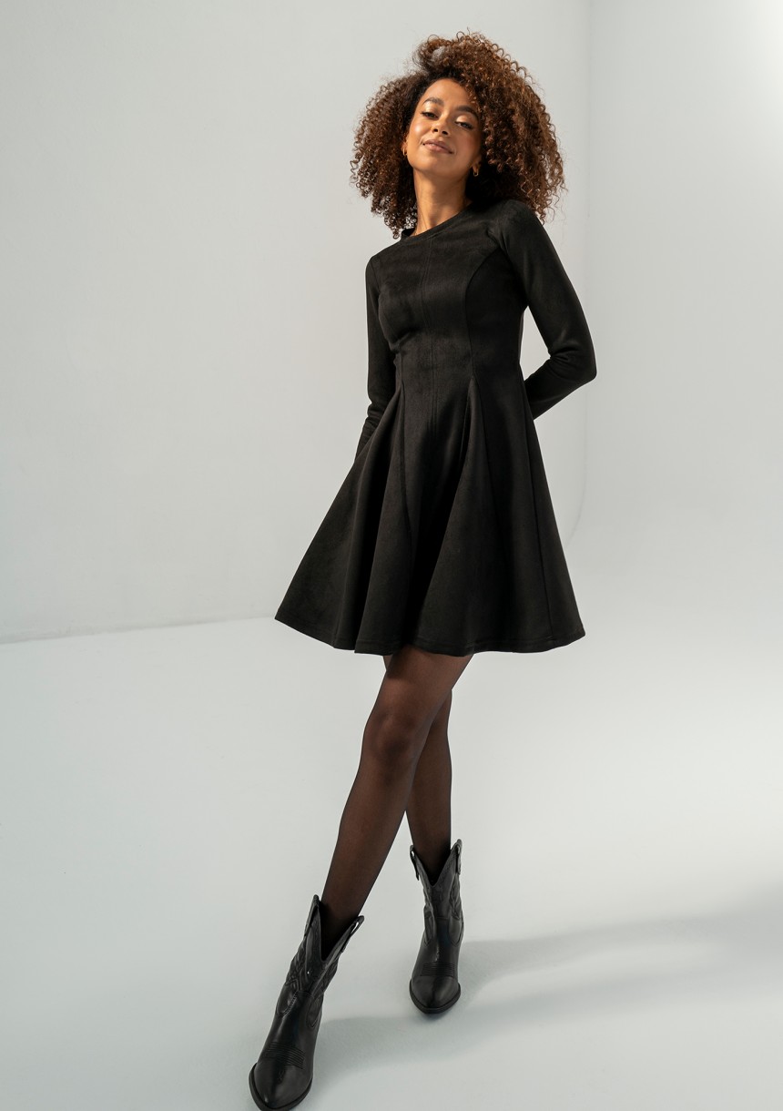 Kelle - Black faux suede flared dress