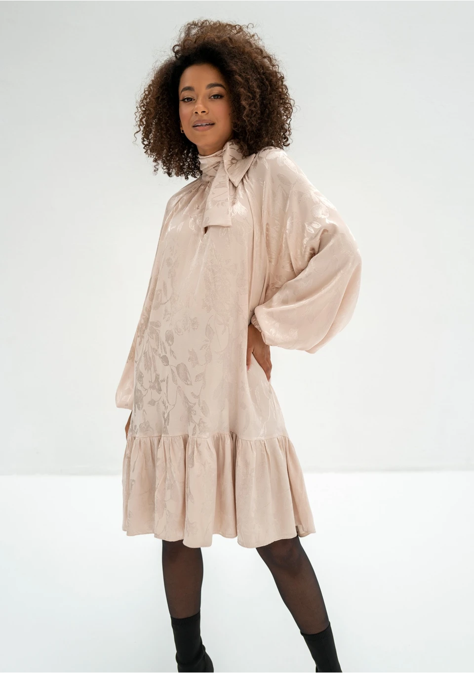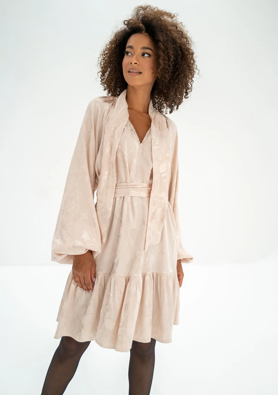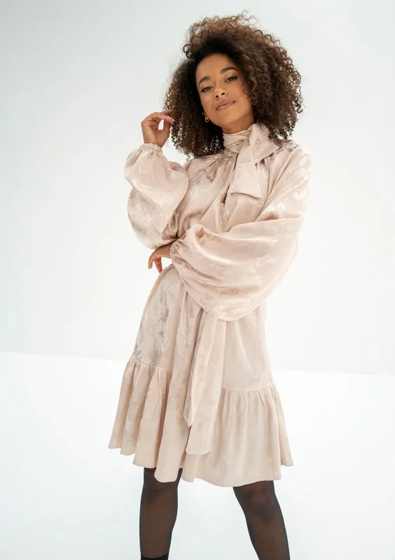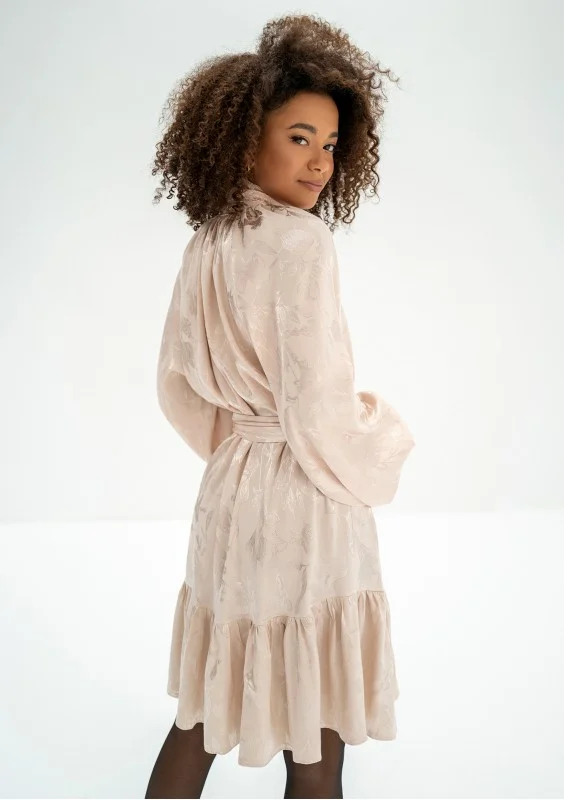 -50% - Beige frilled jacquard rayon dress zł289.99 zł145.00 Lowest price from the last 30 days zł289.99
