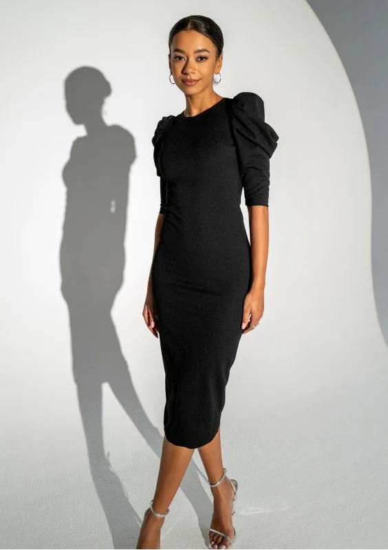 Elise - Black midi fitted dress