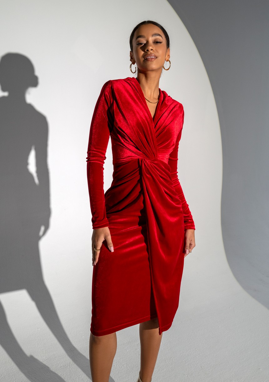 -50% Rose - Red velvet midi draped dress zł299.99 zł150.00 Lowest price from the last 30 days zł299.99
