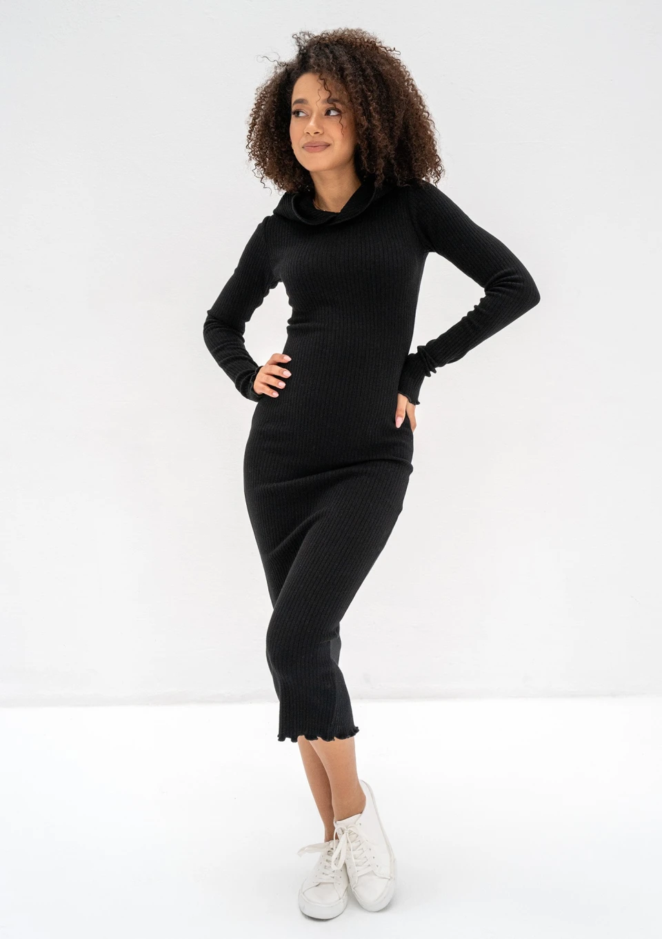 Bessie - Black midi knitted bodycon dress