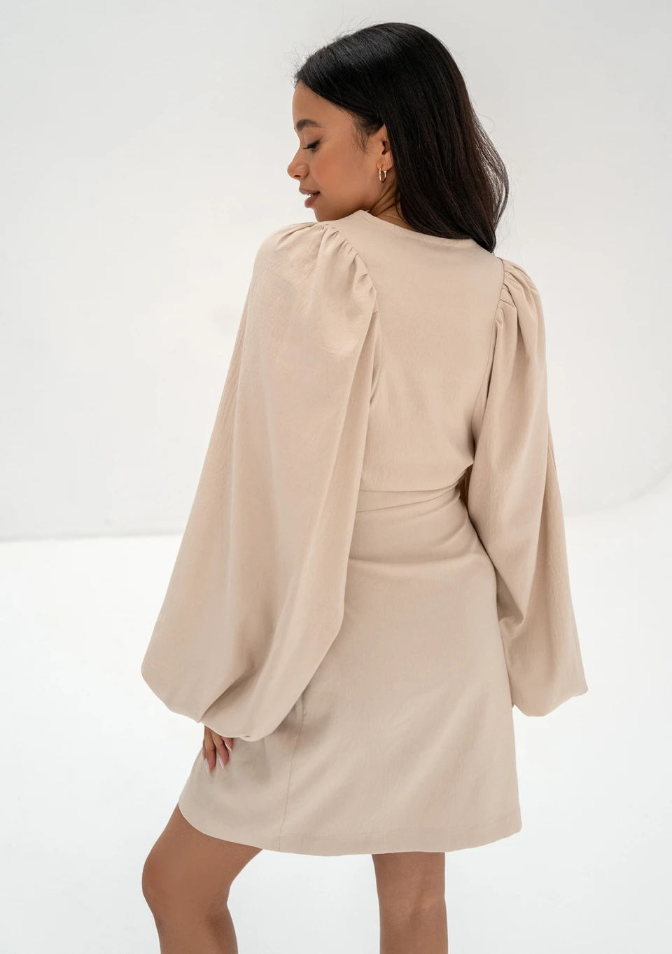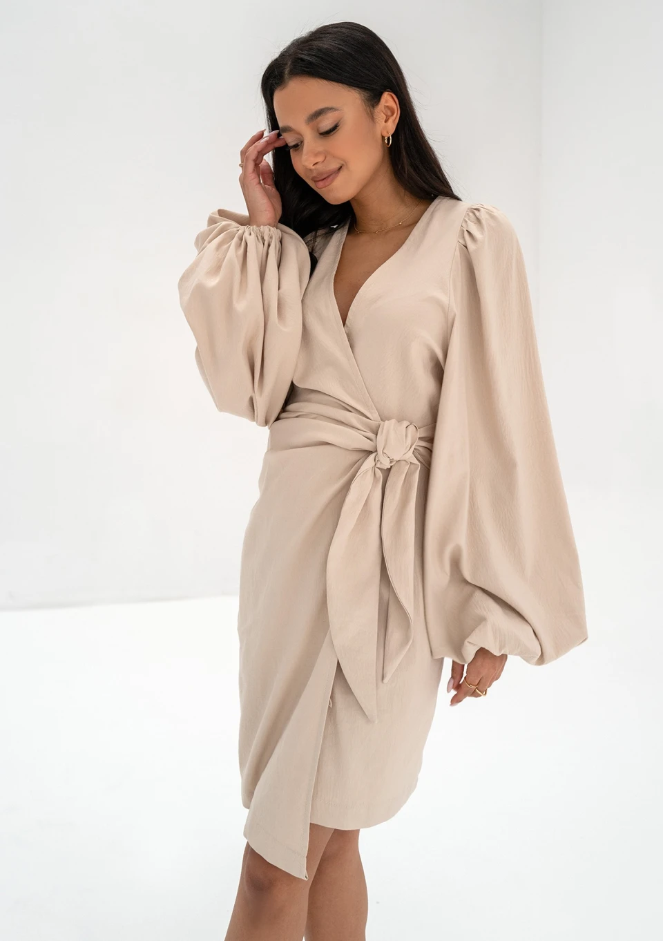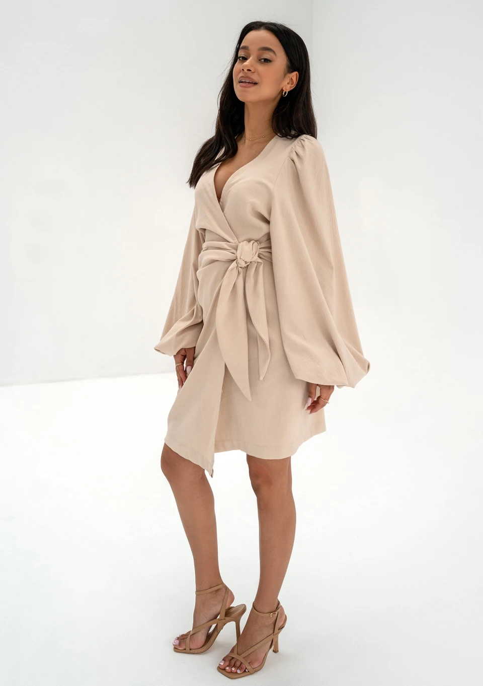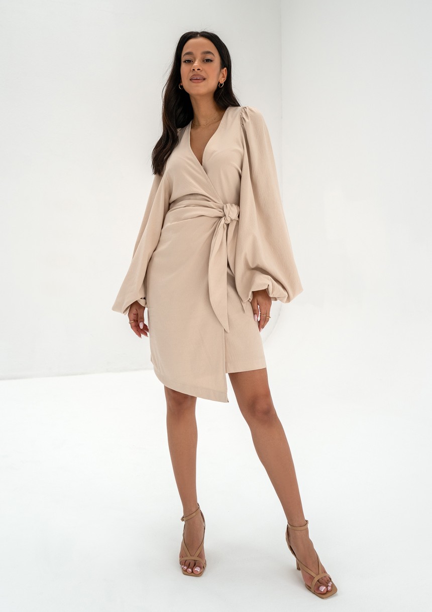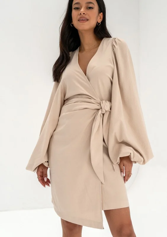 Tilly - Beige wrap dress