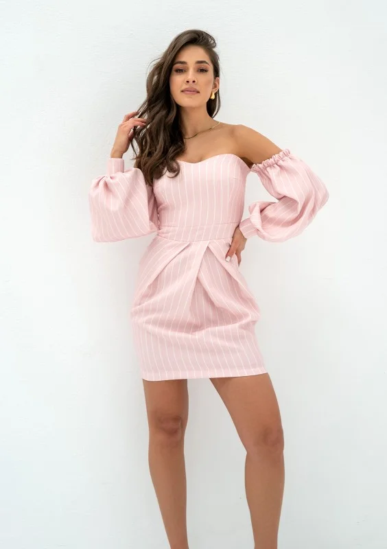 Sonia - Powder pink striped mini dress
