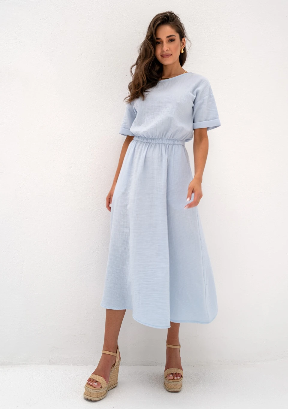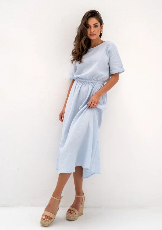 Rosina - Summer light blue muslin midi dress