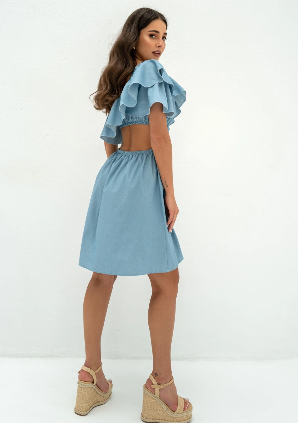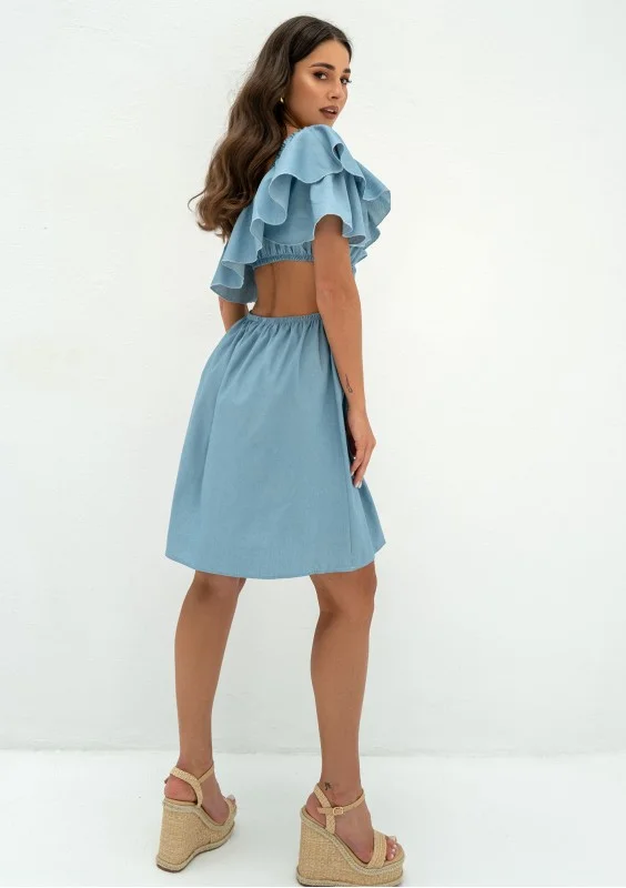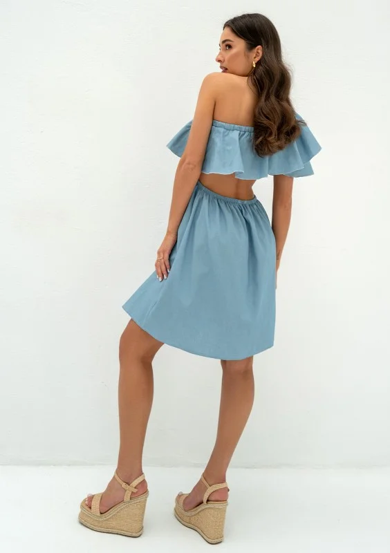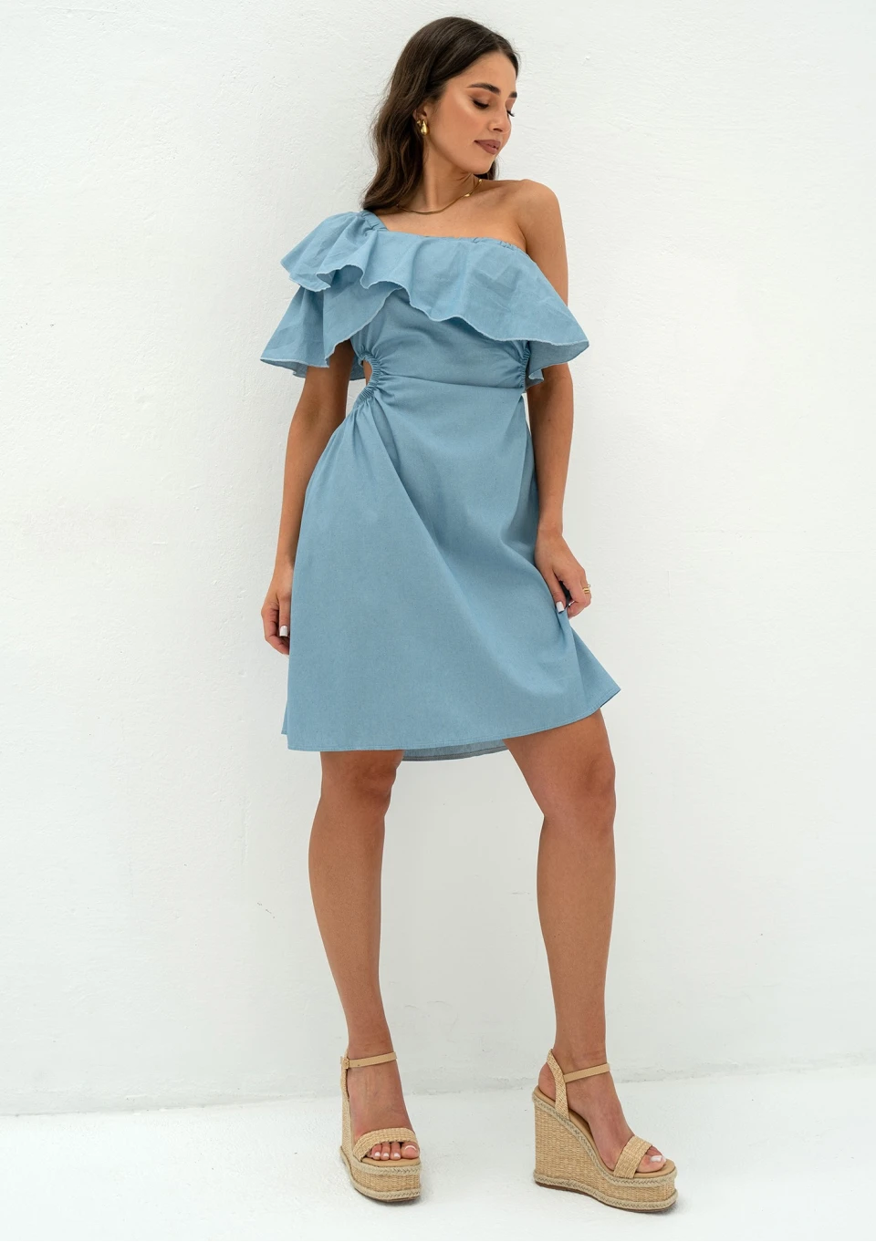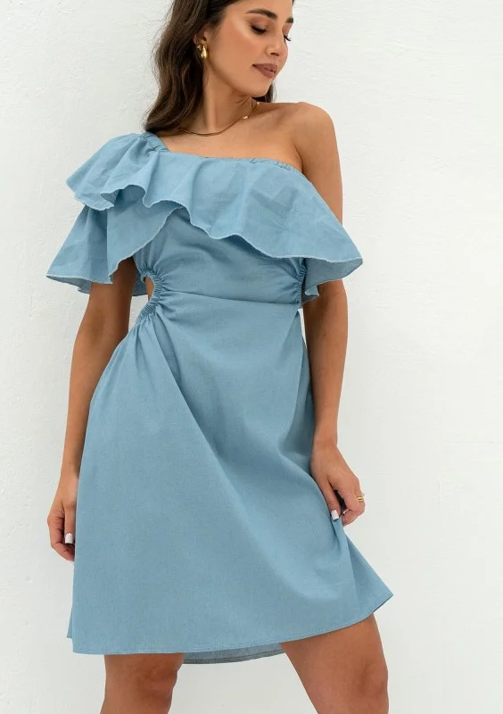 Lyssa - One-shoulder light jeans blue mini dress