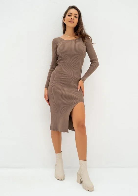 Mirelle - Brown fitted midi dress