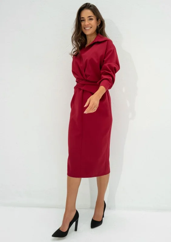 Shira - Claret slim fit midi dress
