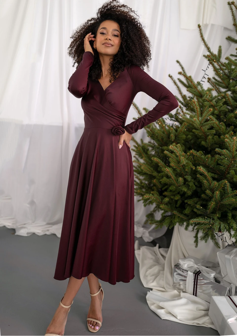 Kyren - Claret midi dress with frills