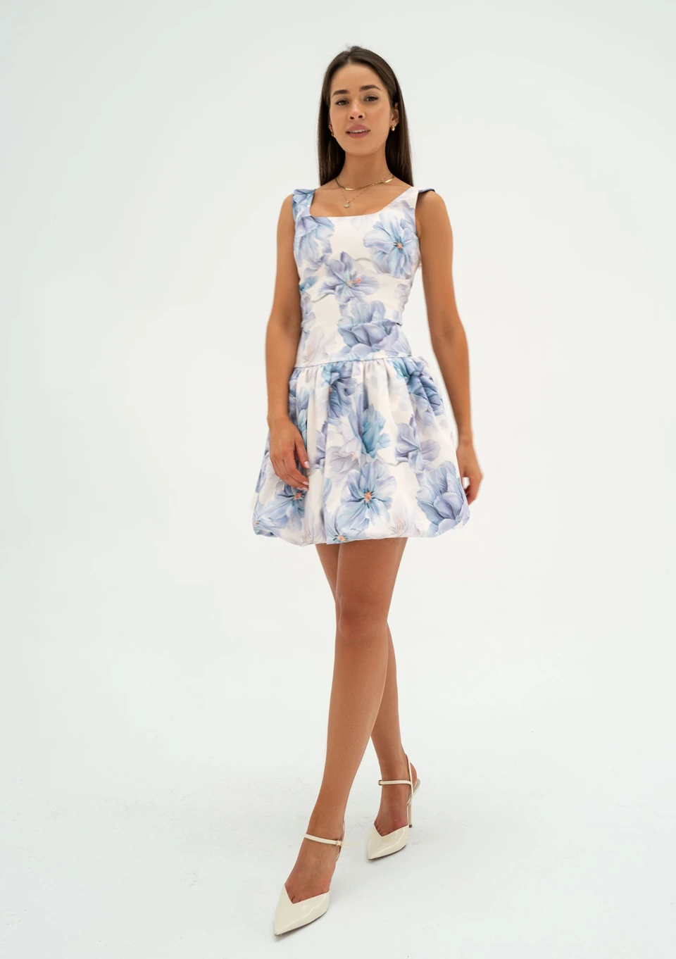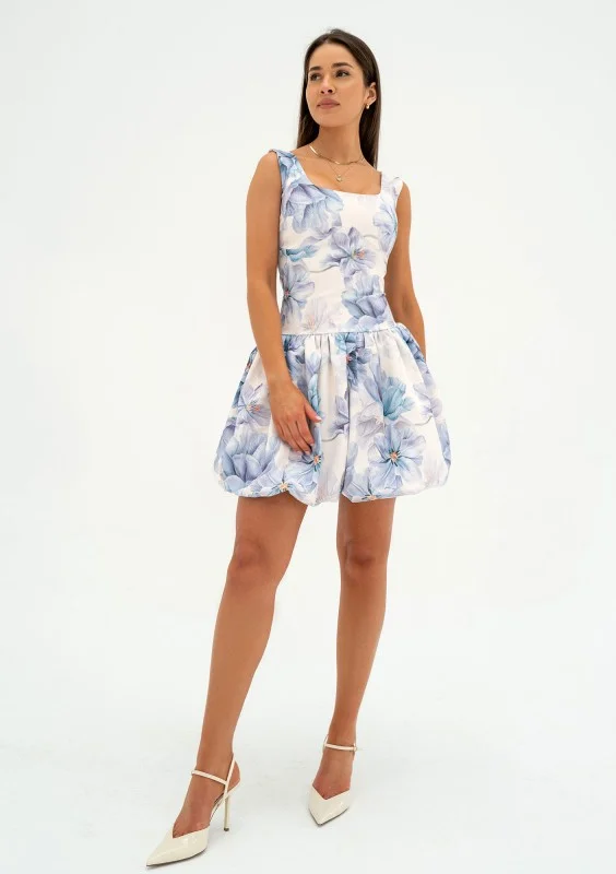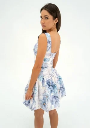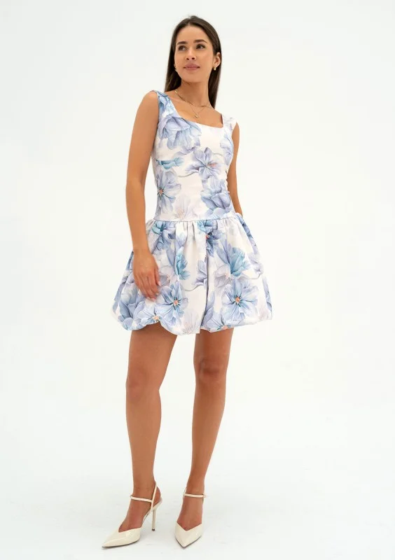 Katie - Blue floral mini bomb dress