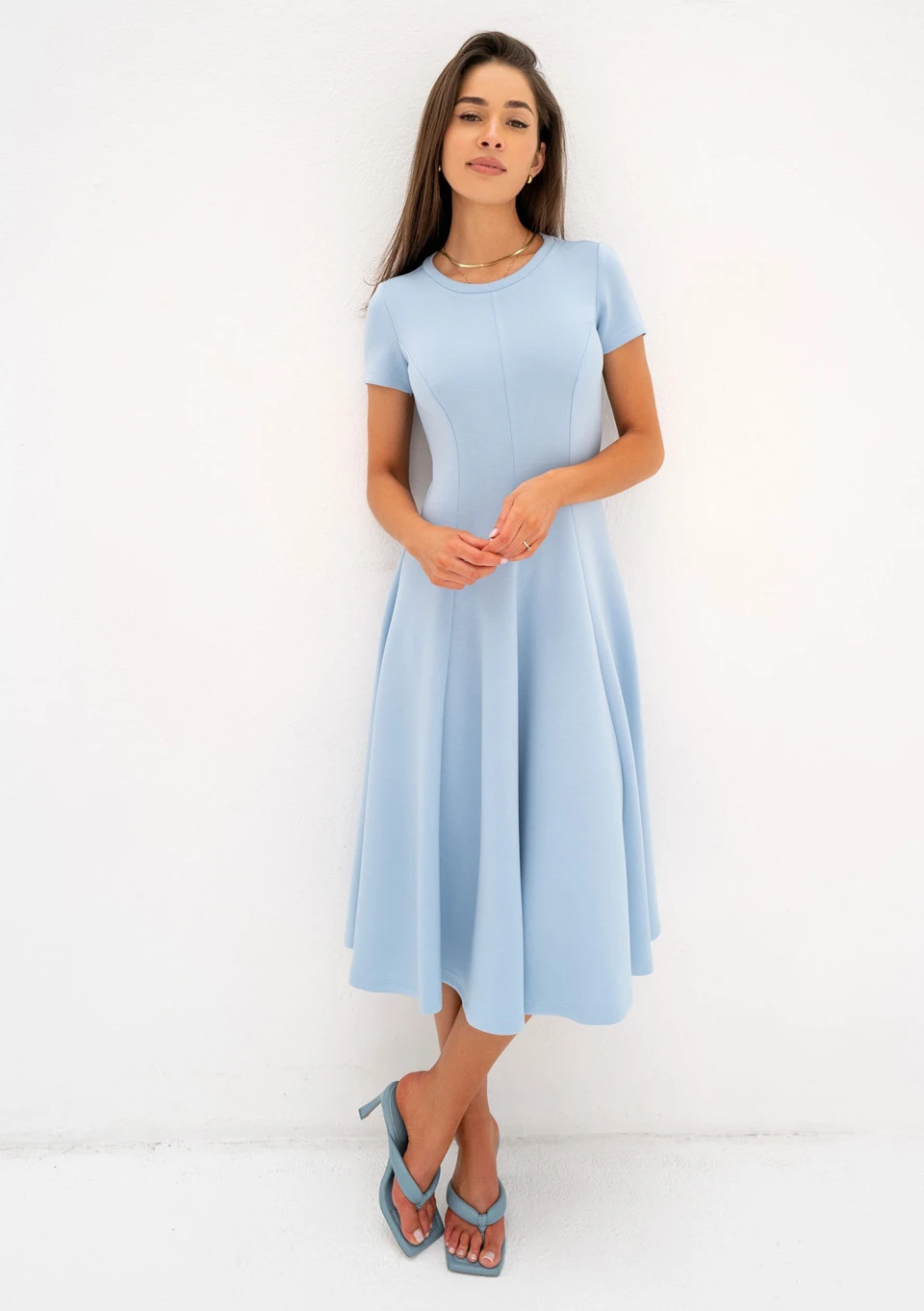 Jasmen - Light blue midi flared dress