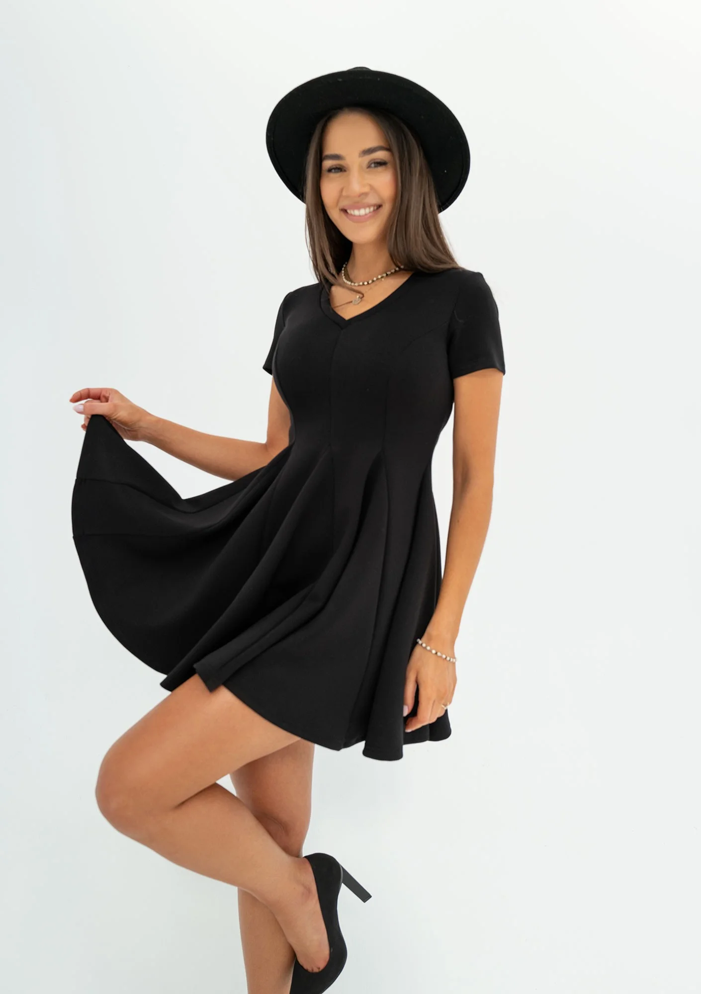 Lila - Black mini flared dress