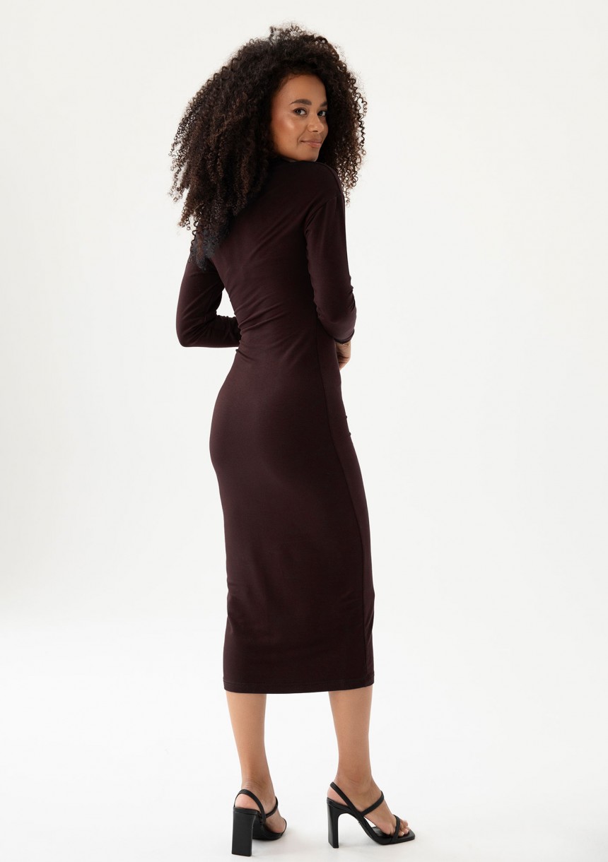 Keyline - Brown fitted midi dress with a cutout