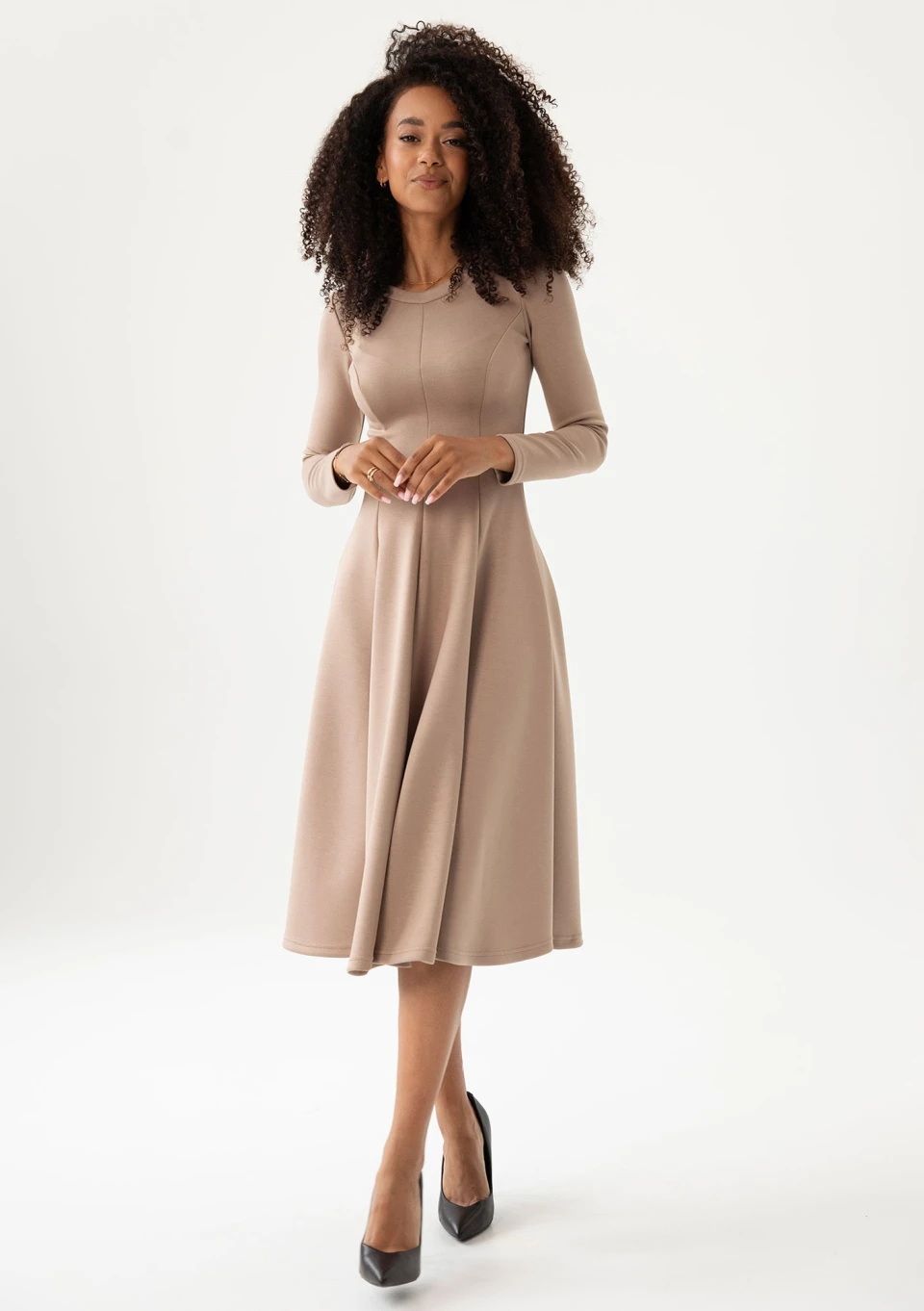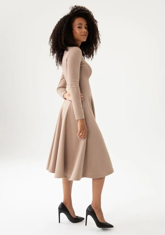 Ellin - Taupe knitted midi dress