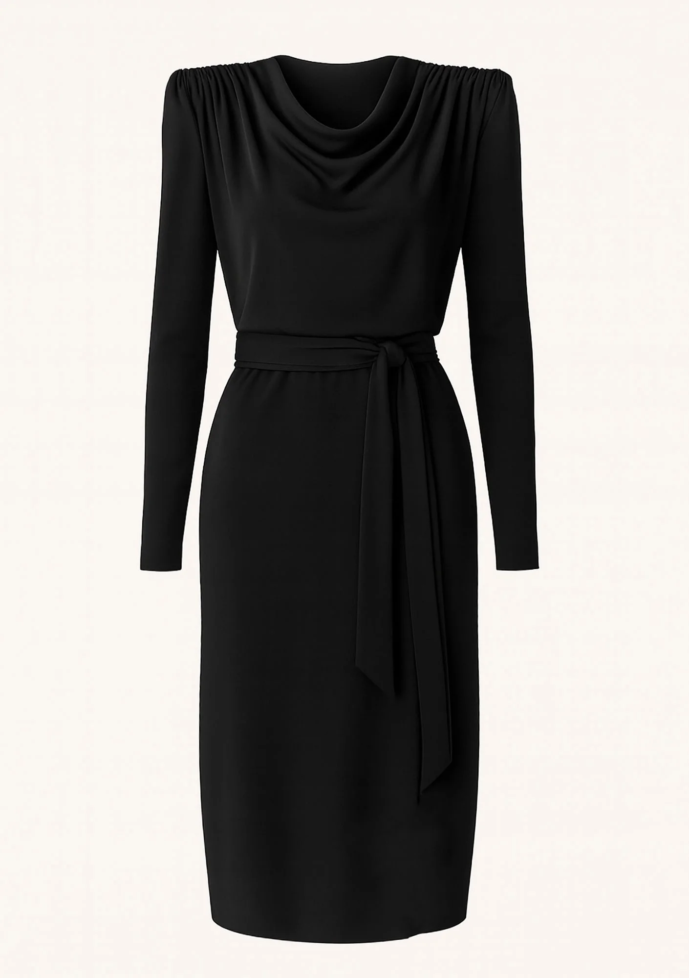 Drip - Black midi dress with a belt and flowing neckline