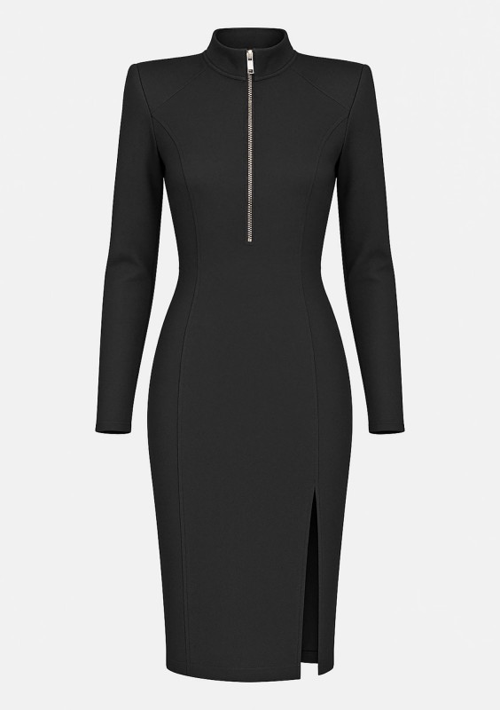 Mira - Black zip-up midi dress