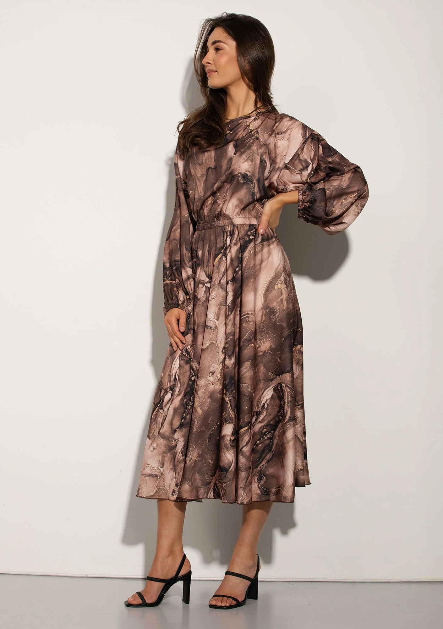 Elvire - midi satin dress brown marble