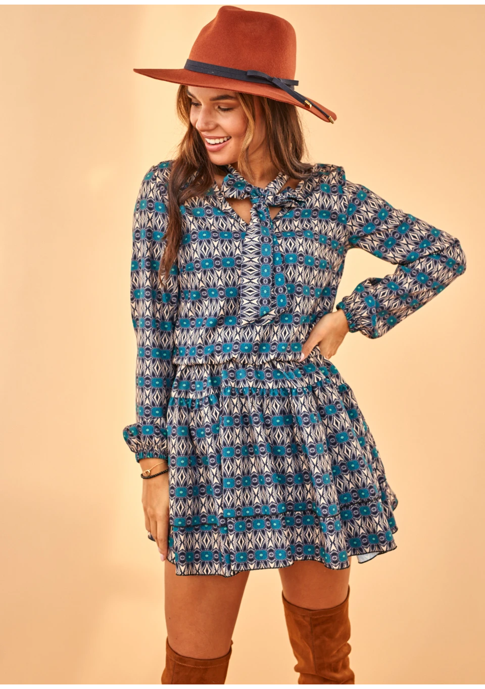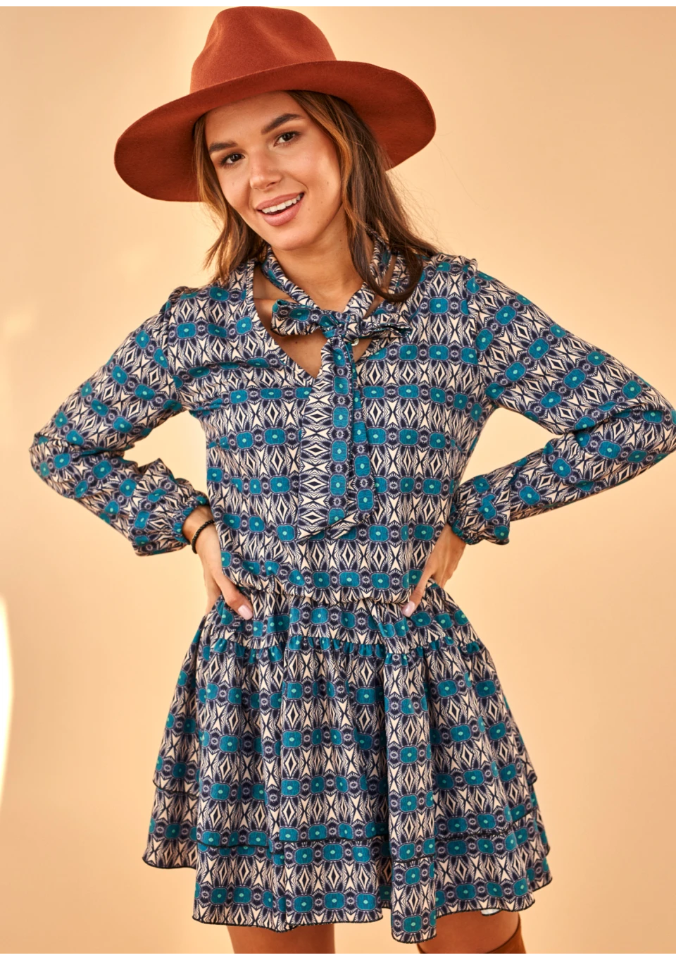 BLUE PRINT DRESS WITH BOW