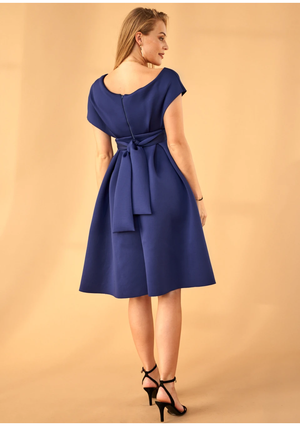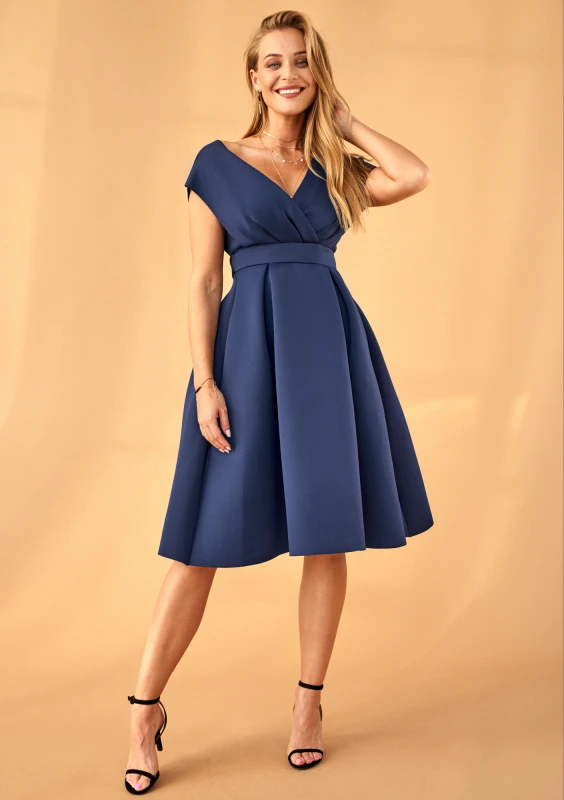 NAVY NEOPRENE MIDI DRESS