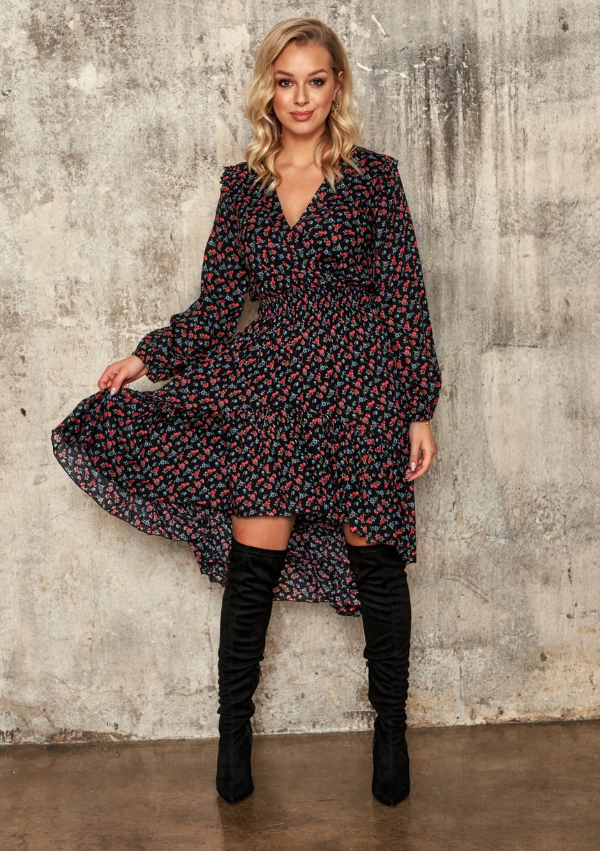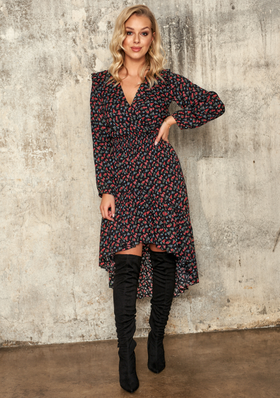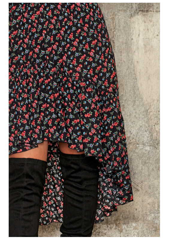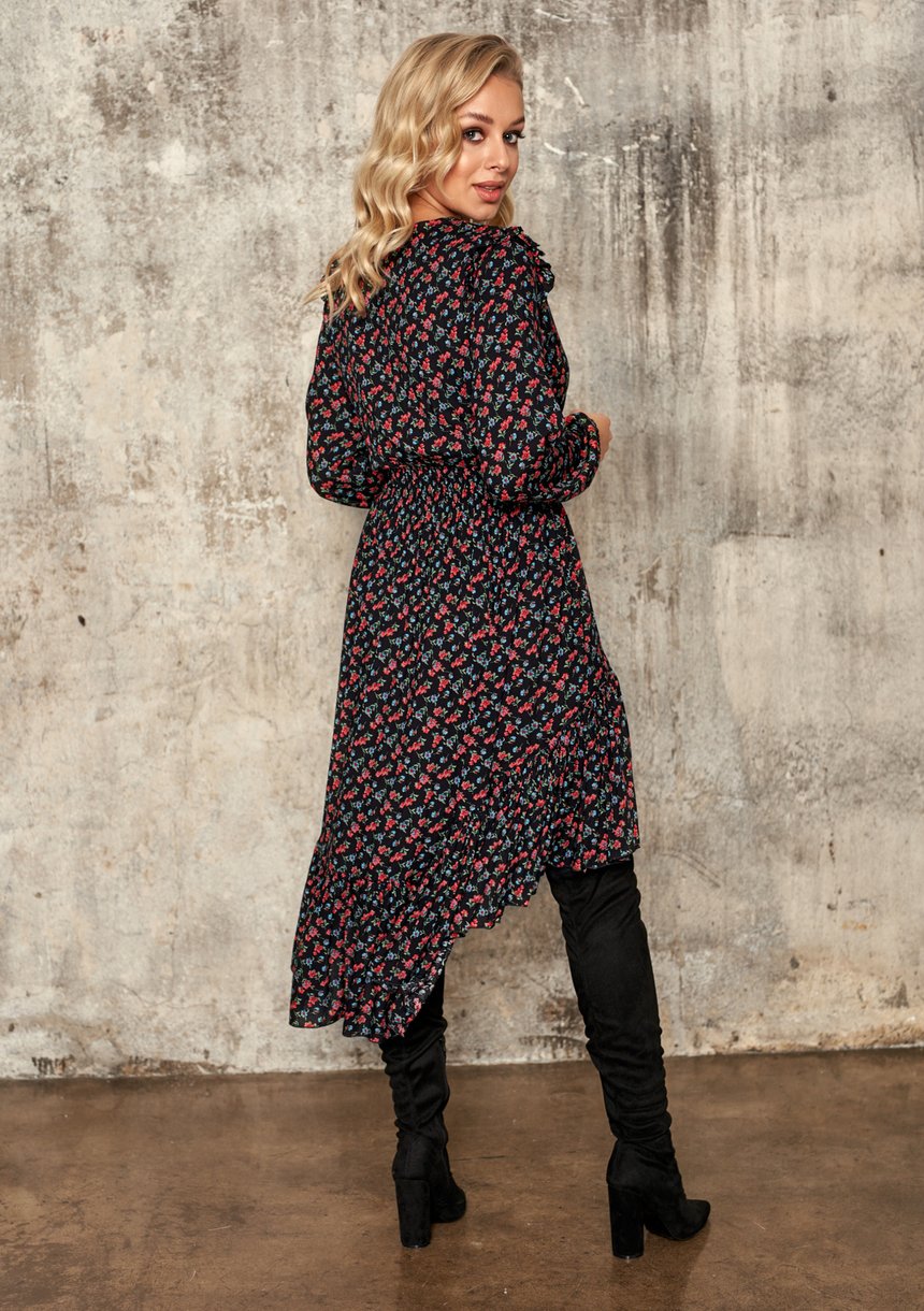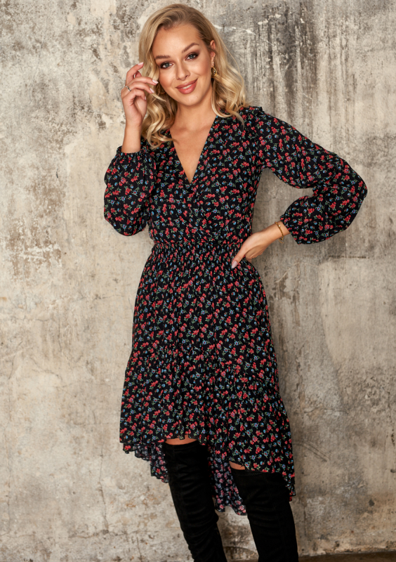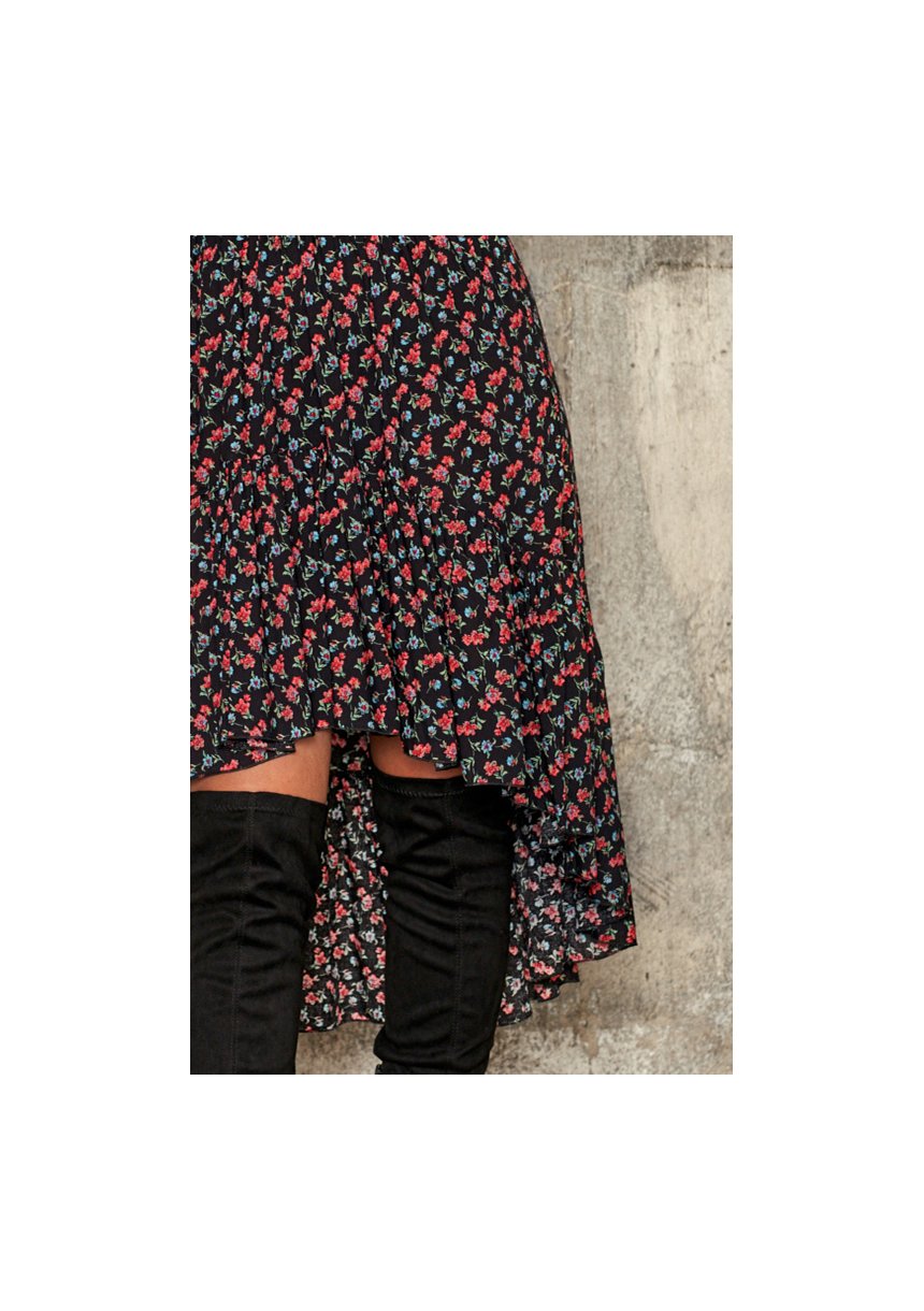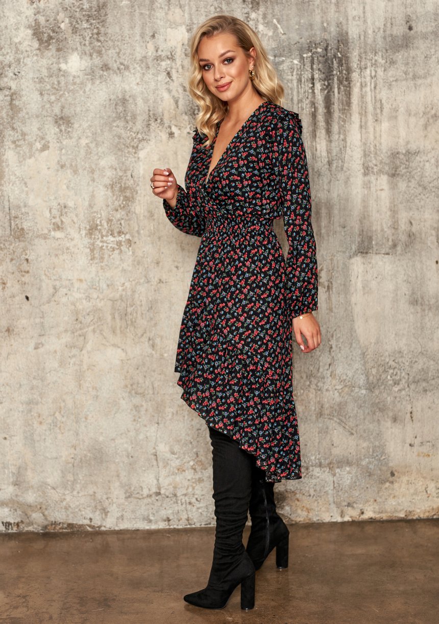 VISCOSE ASYMMETRIC DRESS IN FLOWERS PRINT