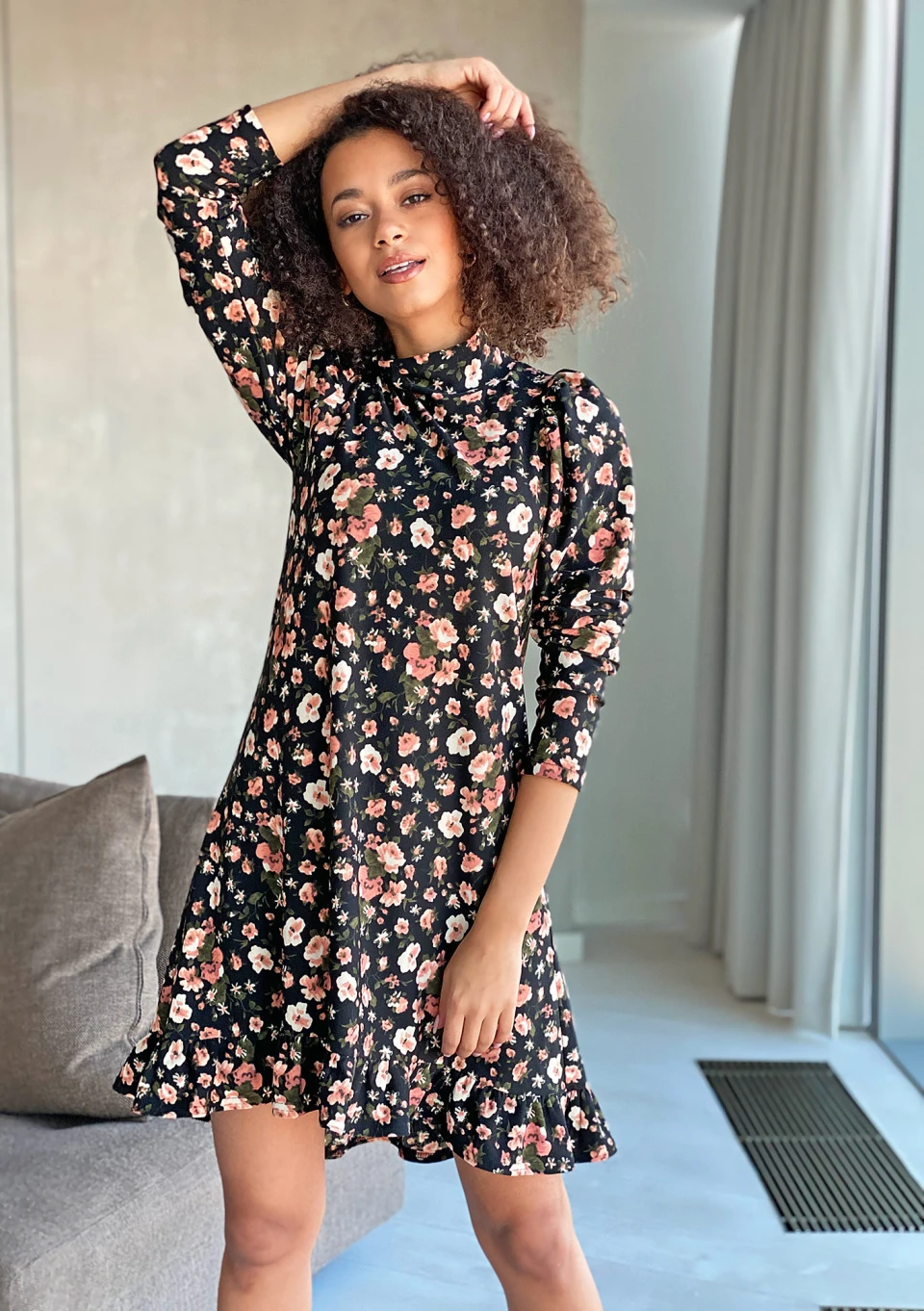 Grace - Black rayon midi dress