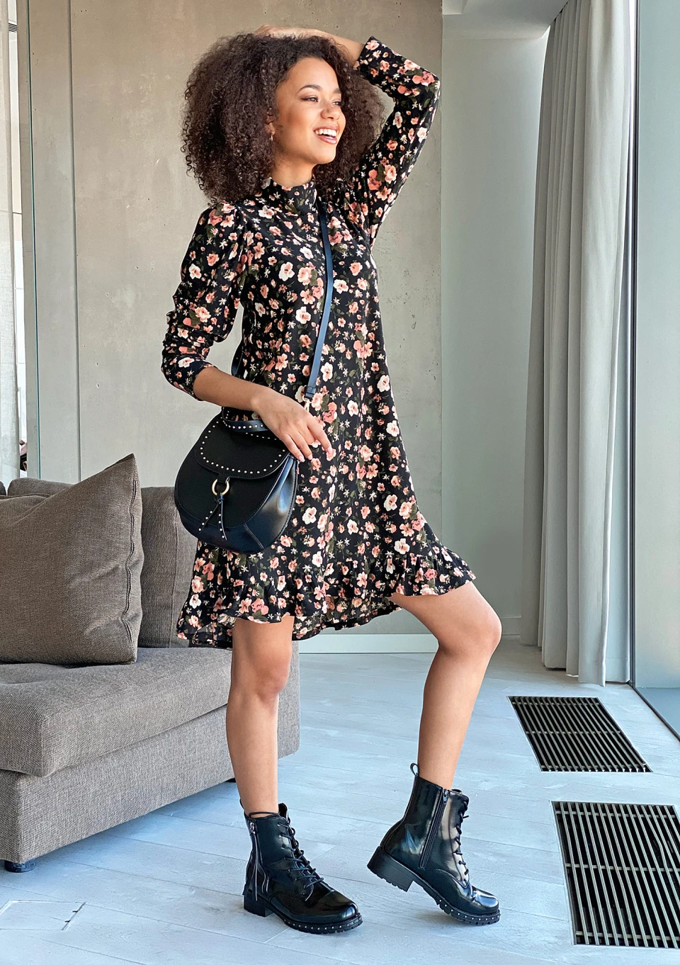 Greta - Black muslin midi dress