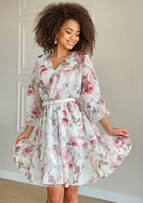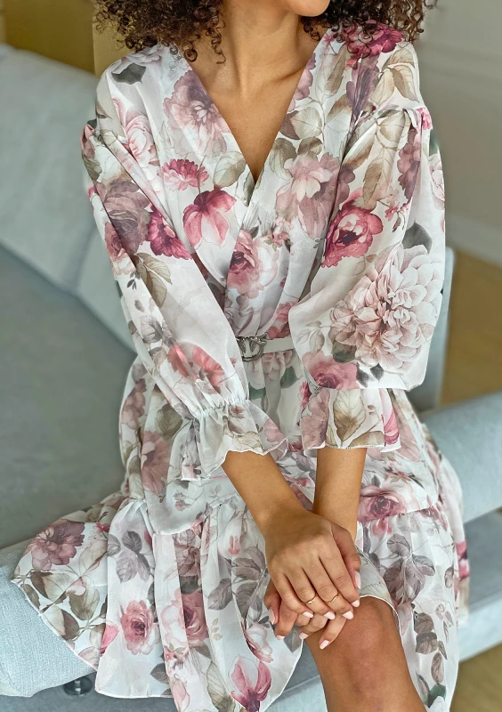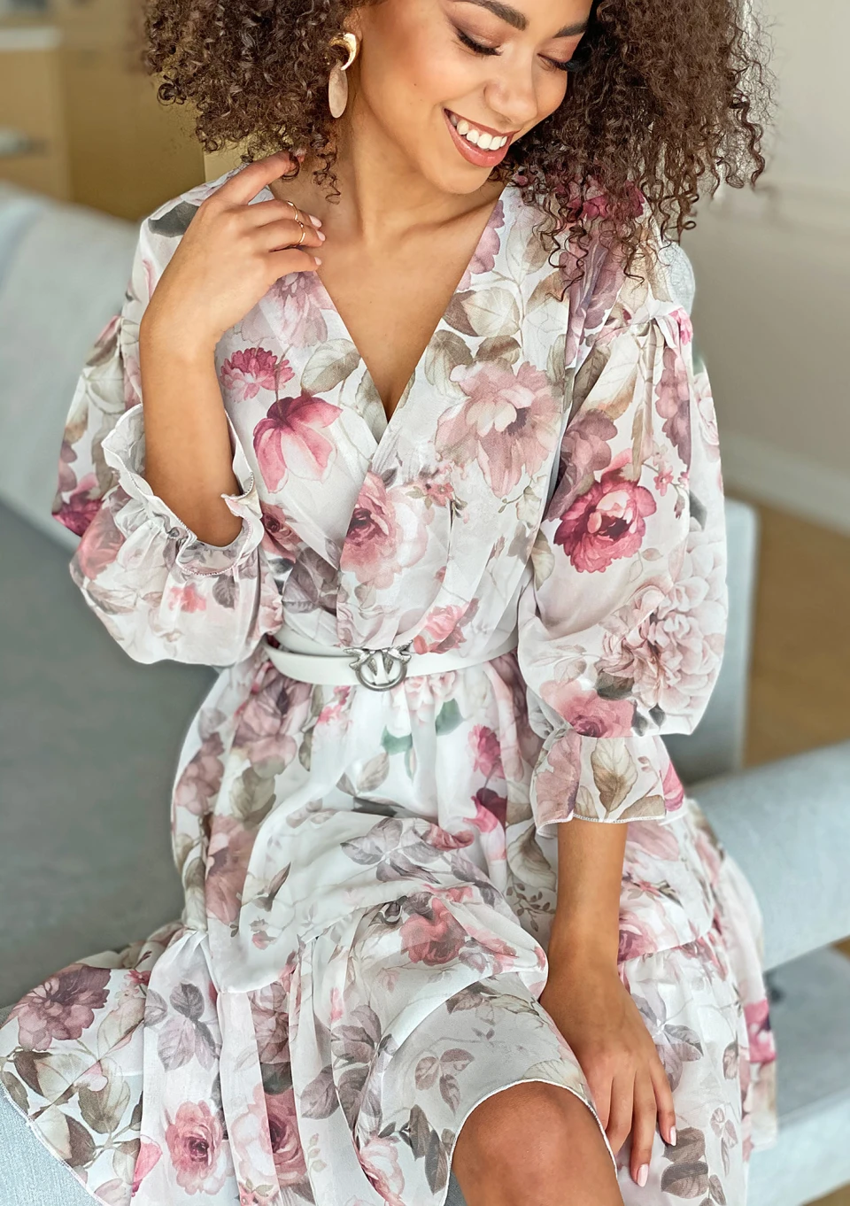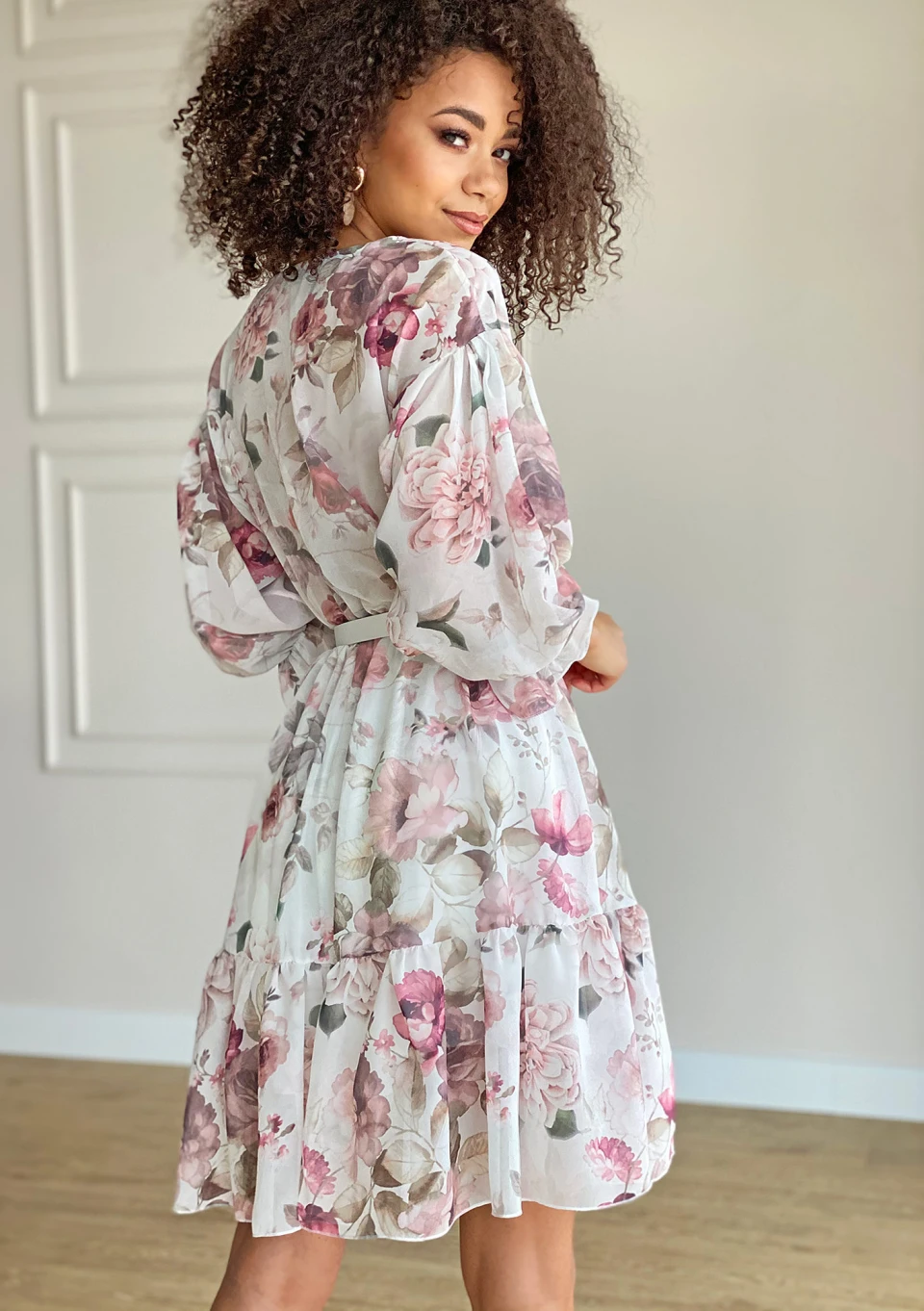 WHITE CHIFFON DRESS IN FLOWERS PRINT