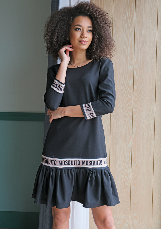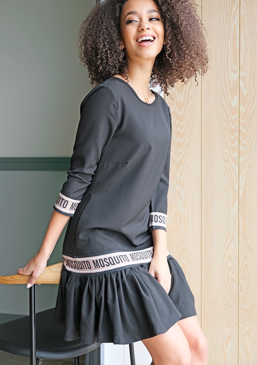 BLACK DRESS WITH FRILL AND LOGO STRIPE
