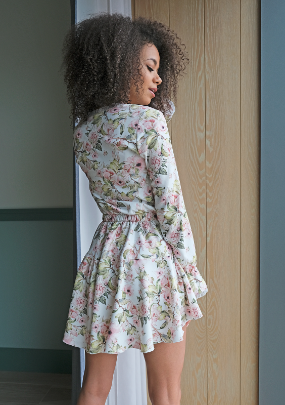 ECRU DRESS IN SPRING FLOWERS PRINT