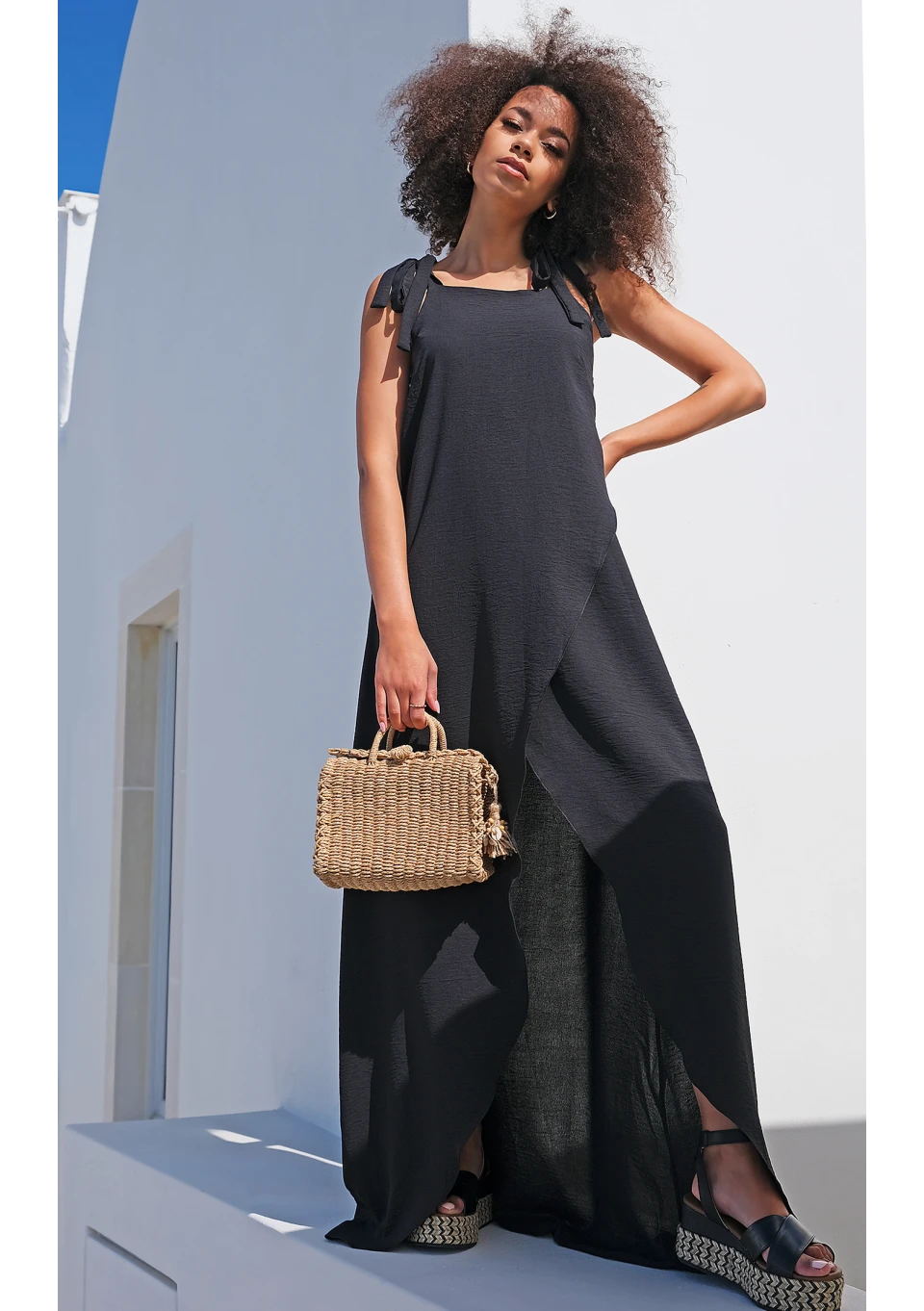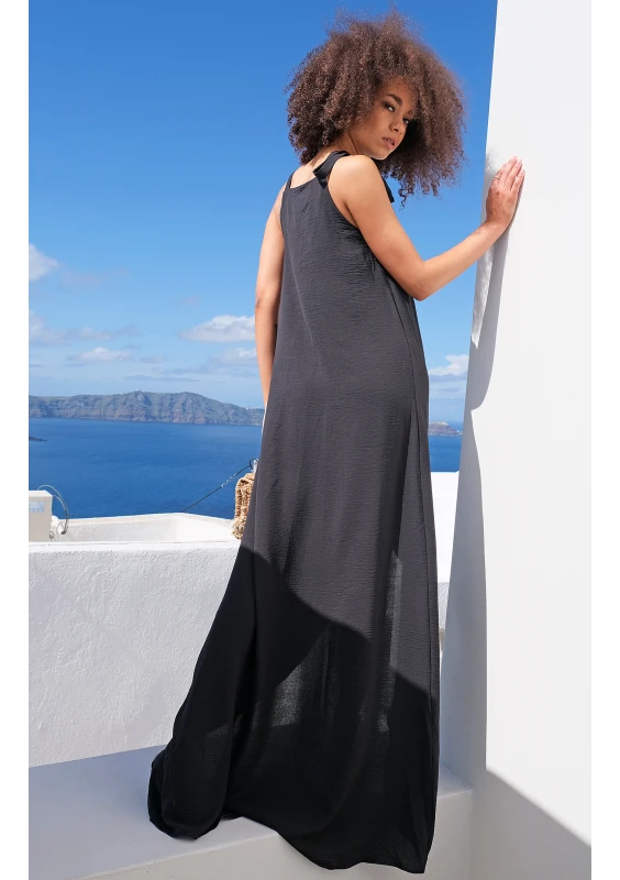 TIED SHOULDERS BLACK MAXI DRESS
