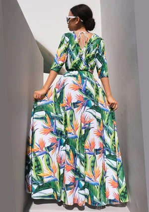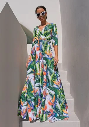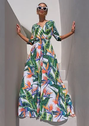 Cudowna!Przepiękna, długa sukienka o wysycontch kolorach. Pięknie się układa!