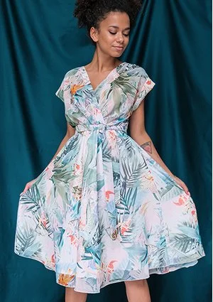 Hannah - chiffon dress in pastel exotic print