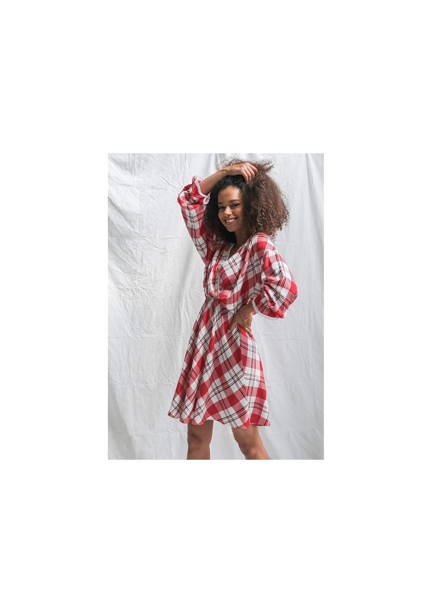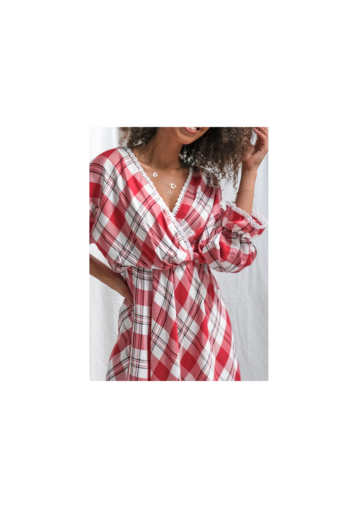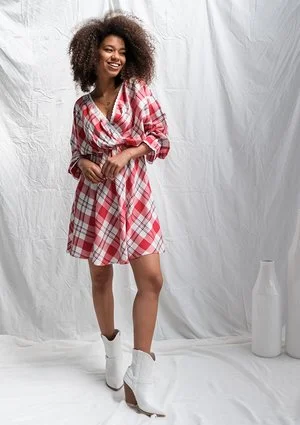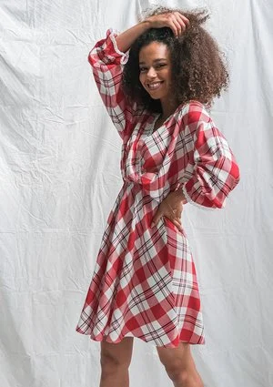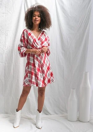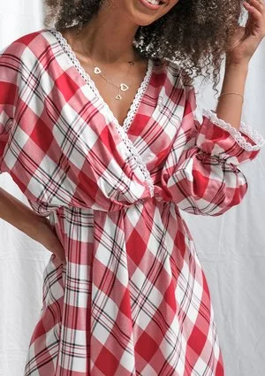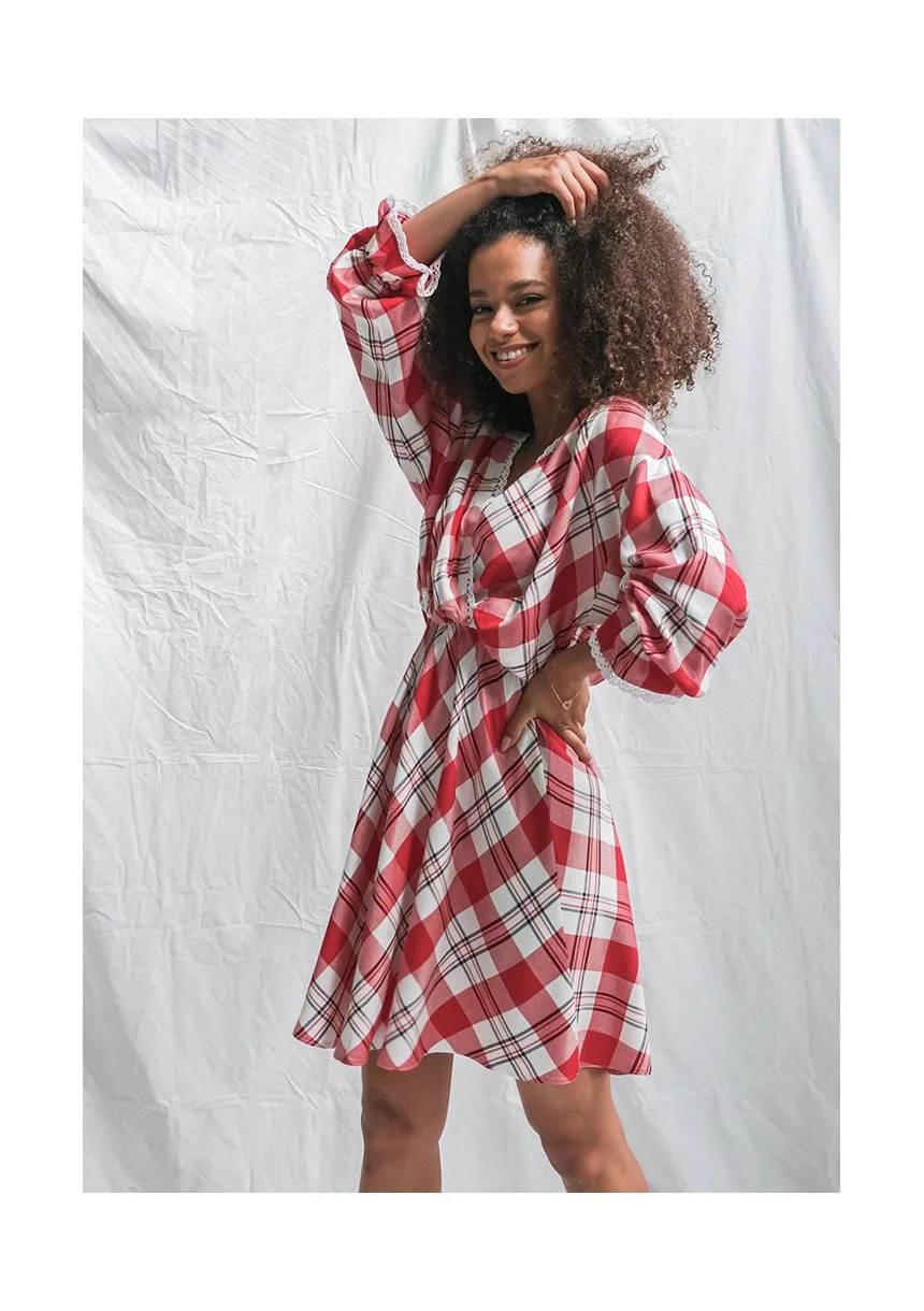 Red check dress with lace details