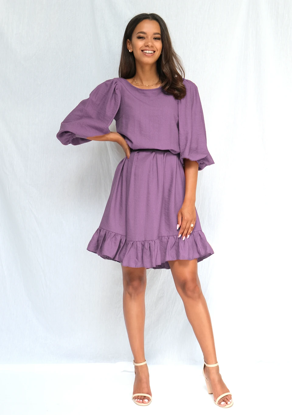 Maud - Boho brown muslin mini dress