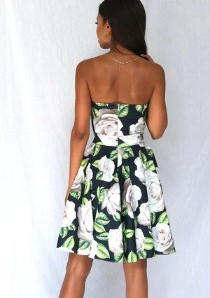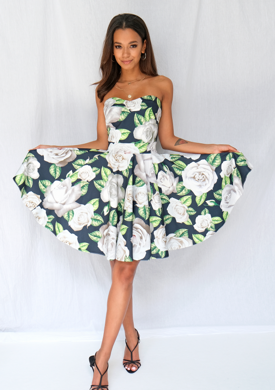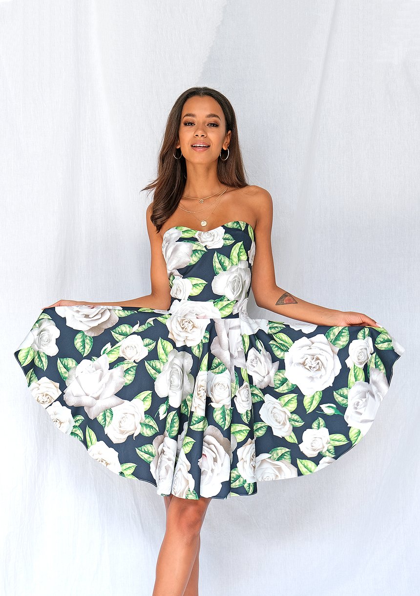 Giselle - strapless dress in white roses print