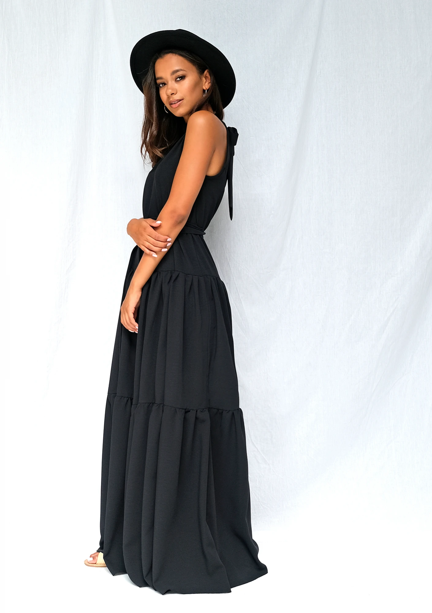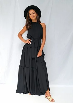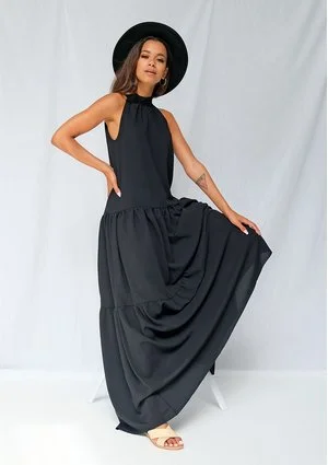 Black maxi dress with halter neck