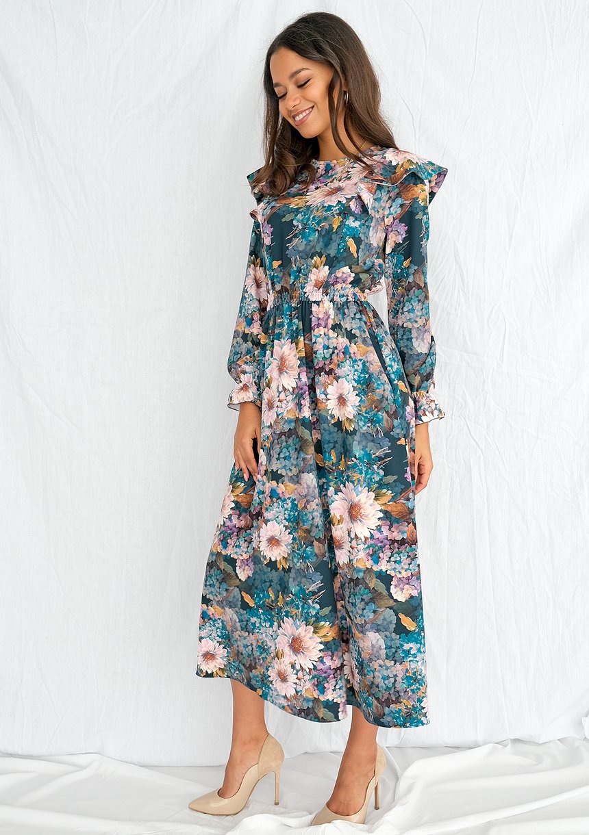 Aquarelle Flowers print midi dress