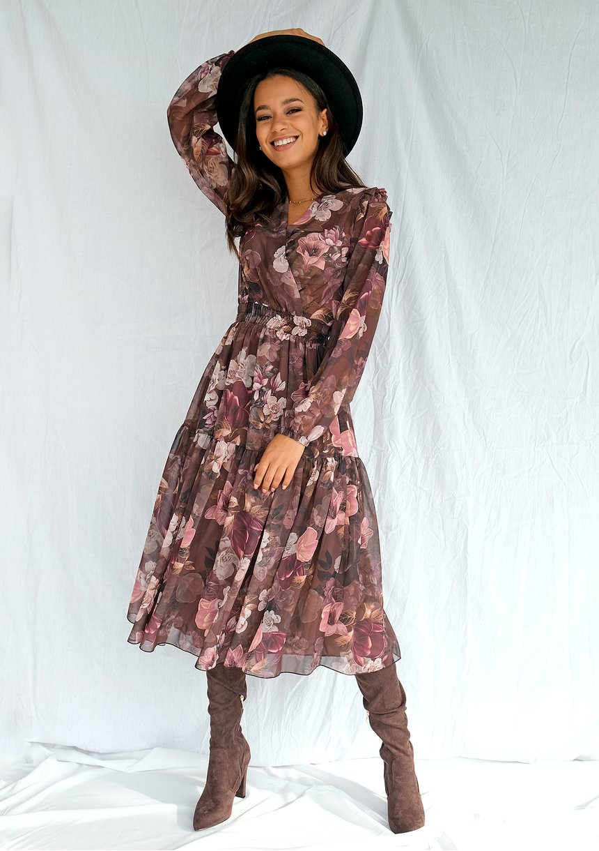 Liliane - Brown muslin midi dress
