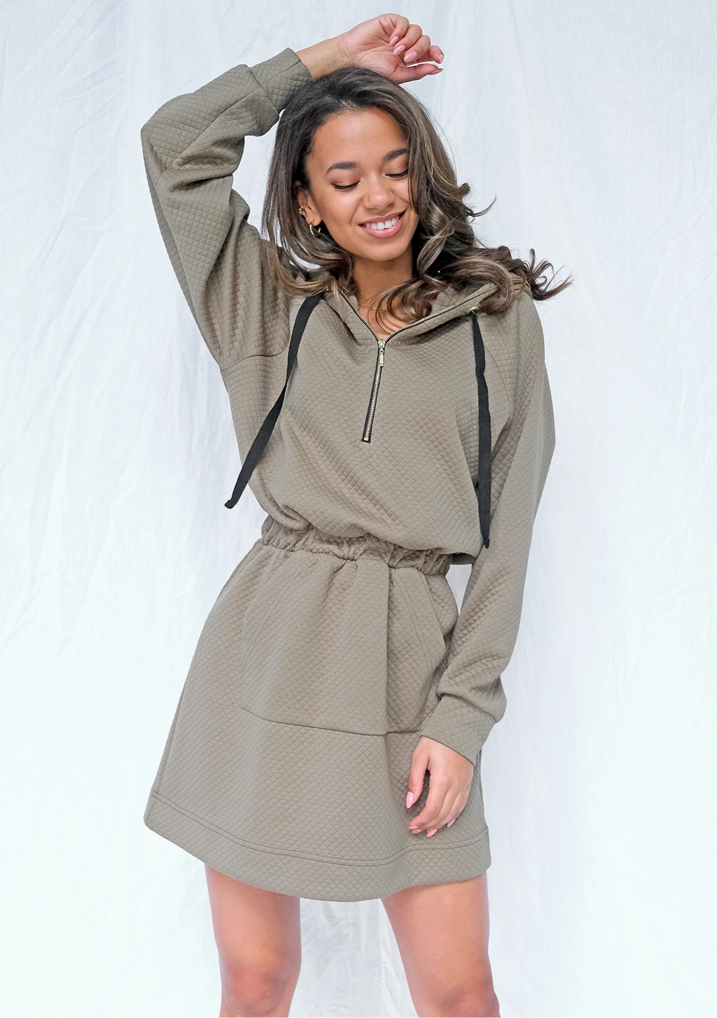 Khaki quilted cotton dress