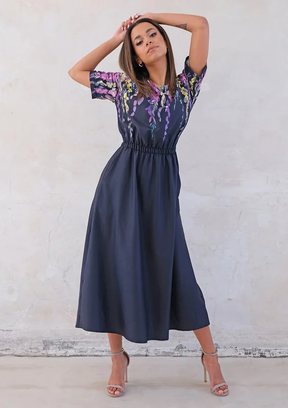 Mabel - Embroidered black midi dress