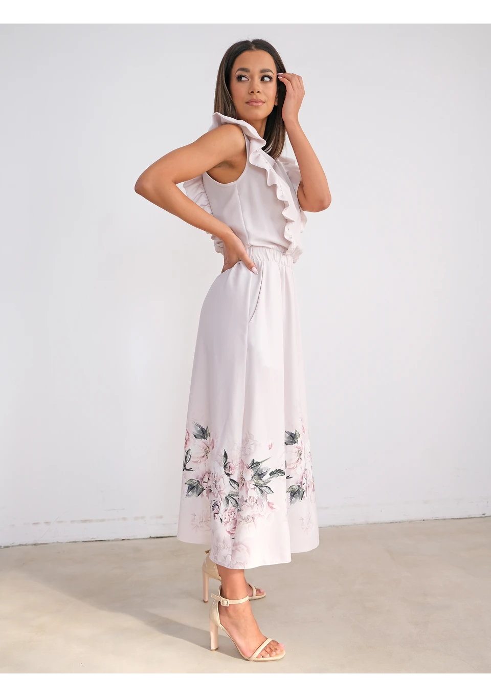 -70% Light-coloured dress with flower print and frills zł229.99 zł69.00 Lowest price from the last 30 days zł229.99