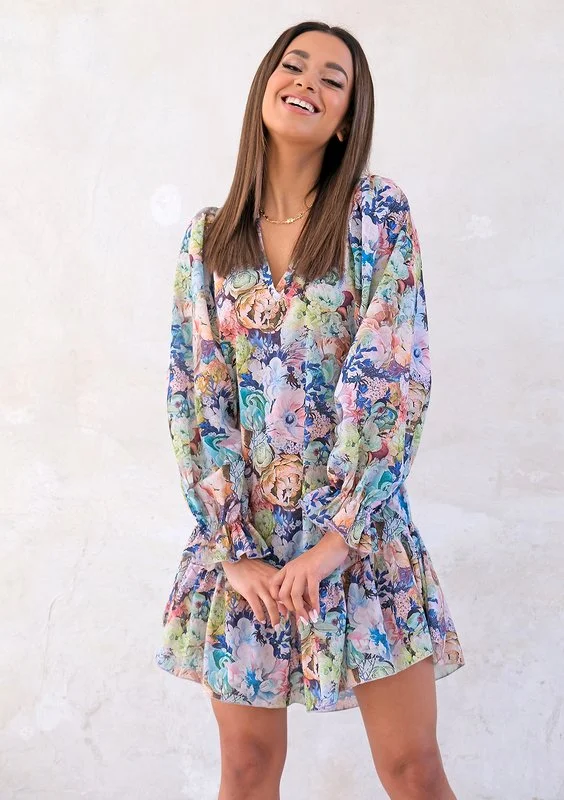 Maud - Boho brown muslin mini dress